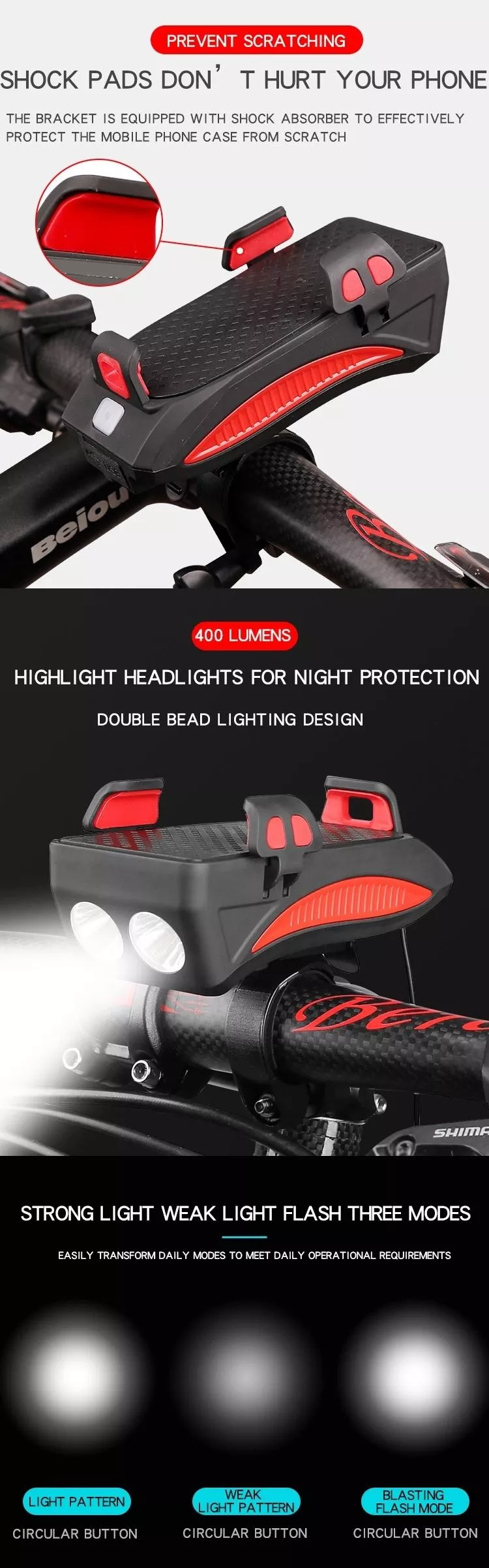 4 en 1: Lumiére, Powerbank, Support, Klaxon