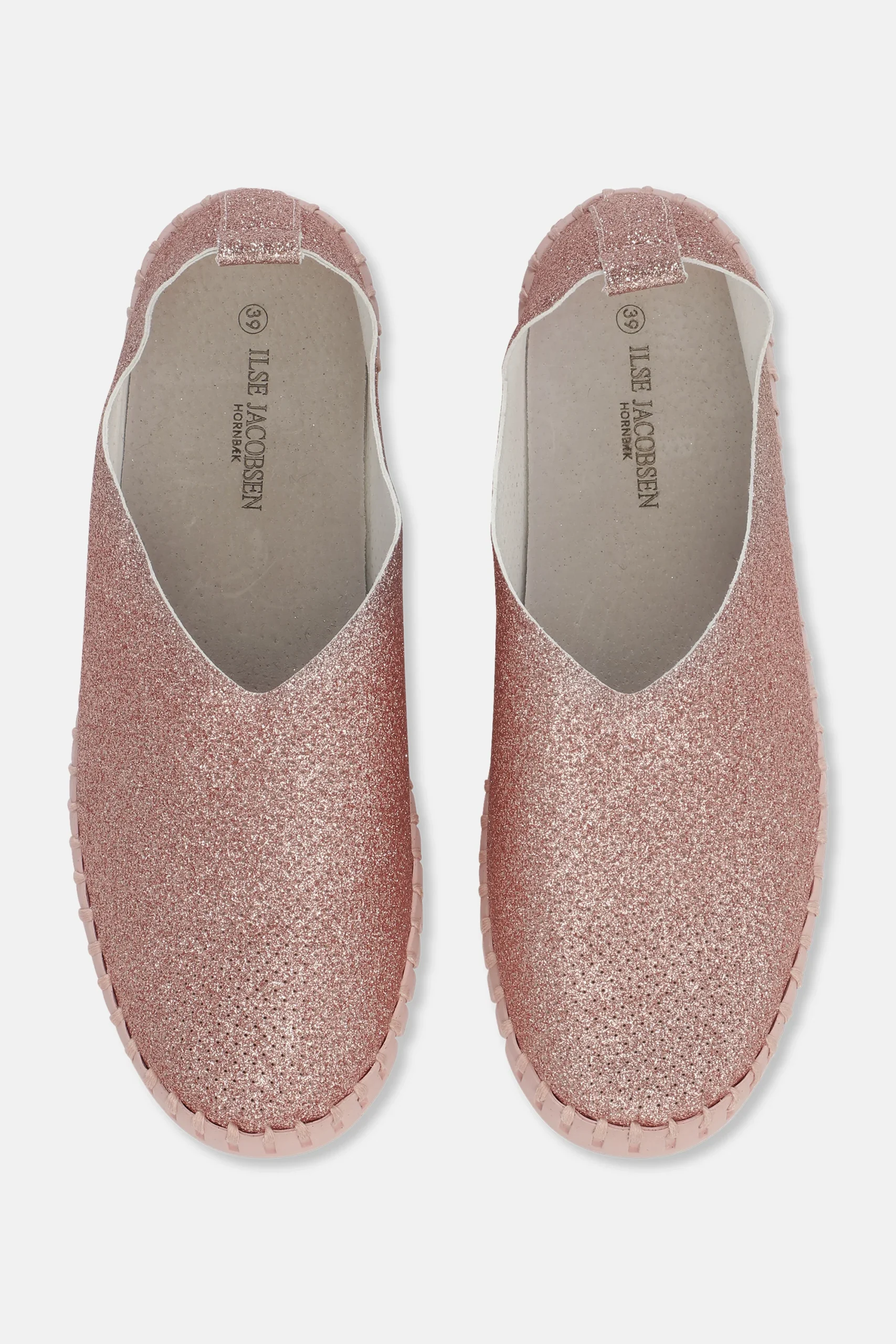 Ballerines Tulip à paillettes par ILSE JACOBSEN HORNBÆK. La tige est en microfibre recyclée avec une surface pailletée ornée d’un fin motif découpé au laser. Elle est montée sur notre emblématique semelle extérieure Tulip assortie. Fabriquées à 75 % en caoutchouc naturel et 25 % en caoutchouc recyclé, avec du fil recyclé assorti, sans colle. La semelle intérieure, doublée de daim de porc, offre un rembourrage et un maintien exceptionnels, pour un confort optimal.