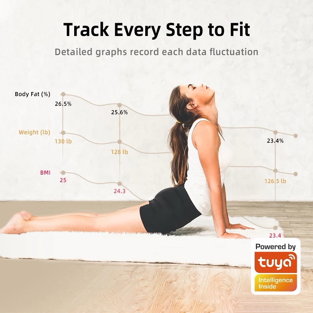 SUIVI COMPLET-【14 mesures corporelles essentielles】Taux de masses grasse en %, BMI (indice de masse corporelle), Taux de masse hydrique en %, Masse musculaire en kg, Fréquence cardiaque, Masse osseuse en kg, Représentation graphique de la catégorie de poid ( Maigreur, Poids normal, Surpoids), Poids corporel sans tissu adipeux en kg, Taux masse de gras sous-cutanée en %, Index cardiaque en l/min/m2, Graisse viscérale, Musculature squelettique en %, Protéines en %, Métabolisme de base