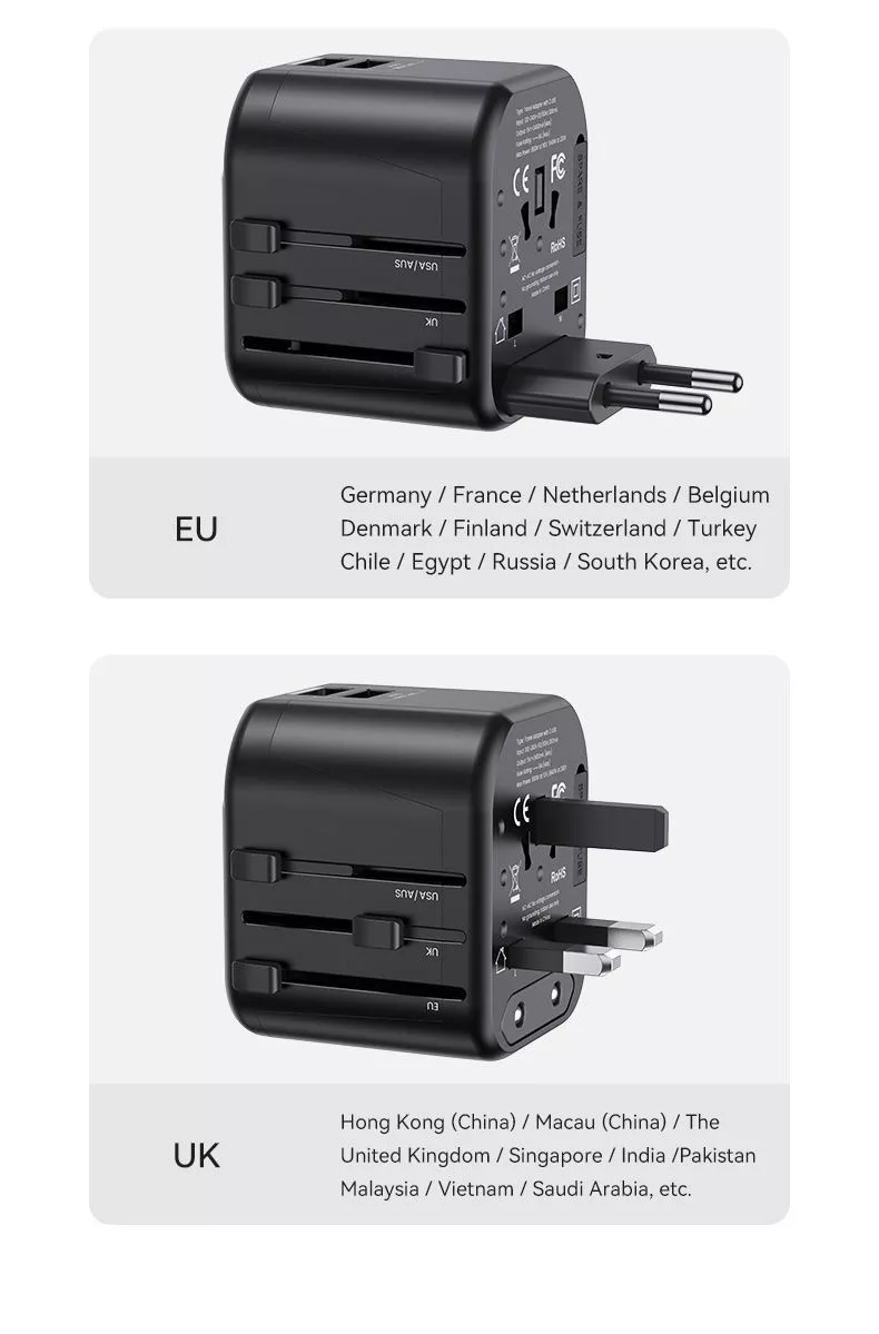 Il existe de nombreux types de chargeurs de voyage disponibles, y compris des chargeurs universels qui peuvent être utilisés dans différents pays avec différents types de prises électriques. Ces chargeurs sont équipés d’adaptateurs pour les prises anglaises, européennes, américaines et australiennes, vous permettant de les utiliser dans la plupart des pays du monde.