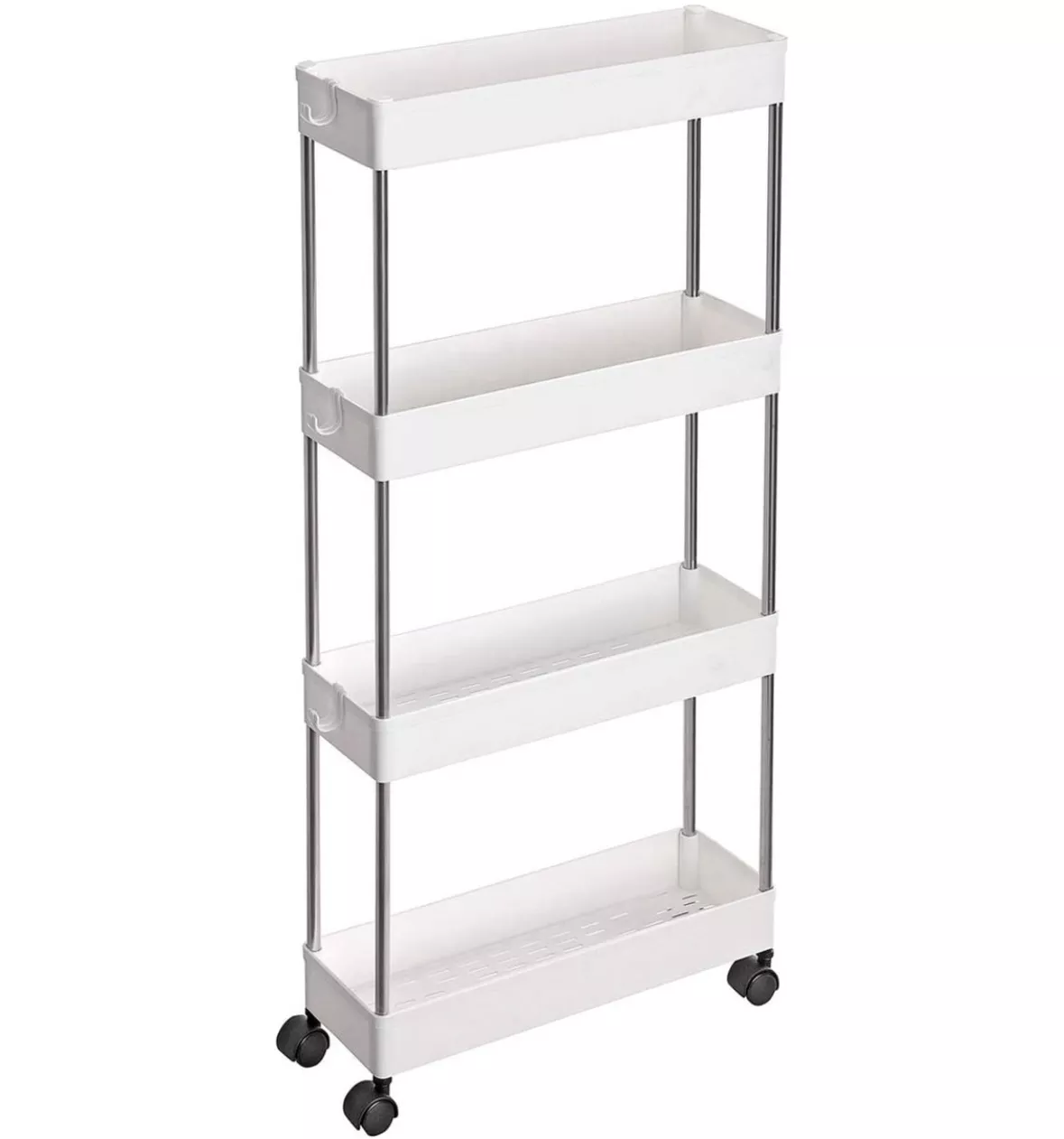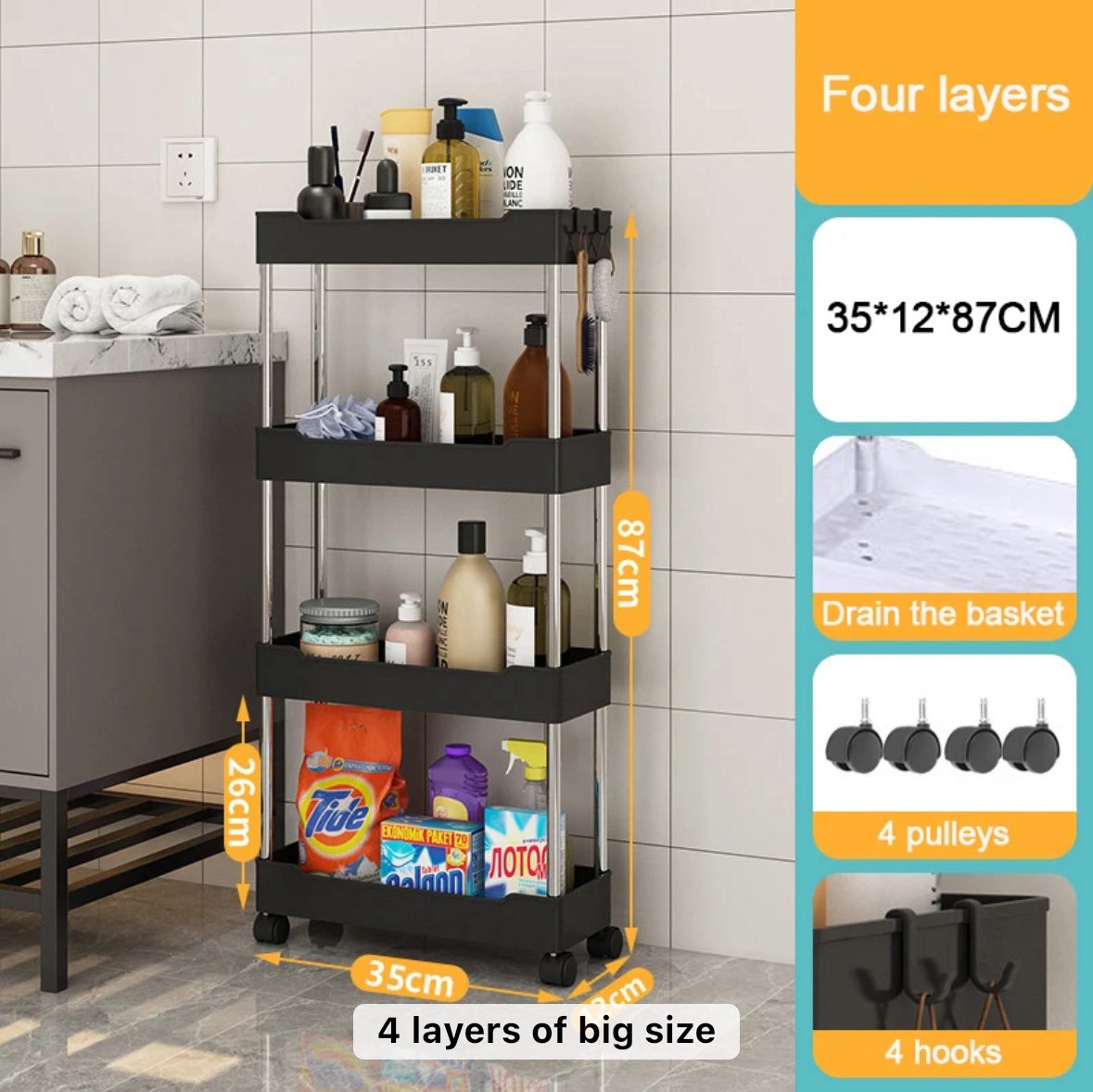 Chariot de rangement à 4 niveaux. Il peut facilement s’adapter aux espaces restreints de votre maison. Vous pouvez y mettre ce que vous voulez, comme des articles de toilette, des serviettes, des objets d’artisanat, des plantes, des outils, de la nourriture, des documents, etc.