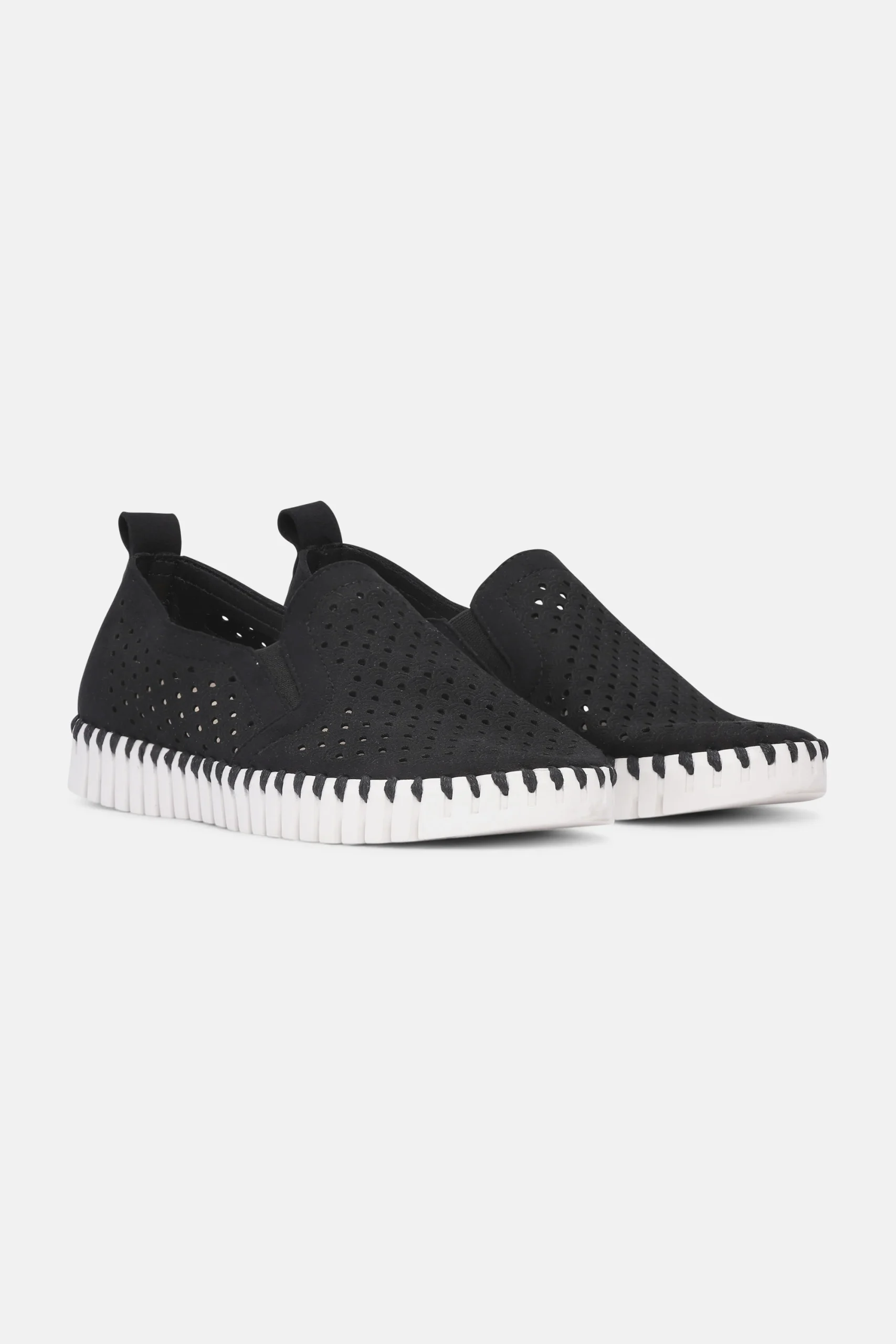 Cette chaussure légère signée Ilse Jacobsen est parfaite en toute occasion. Pratique, très confortable et élégante, elle est idéale pour voyager grâce à sa semelle extérieure souple en caoutchouc naturel et sa tige respirante à motif découpé au laser. Fabriquée en microfibre recyclée, elle est disponible dans une variété de coloris, des couleurs basiques luxueuses aux couleurs vives et joyeuses, avec des coutures assorties. Elle est dotée d’empiècements élastiques sur les côtés. La tige est fabriquée sans colle. Cette chaussure tendance et pratique est un incontournable indémodable.