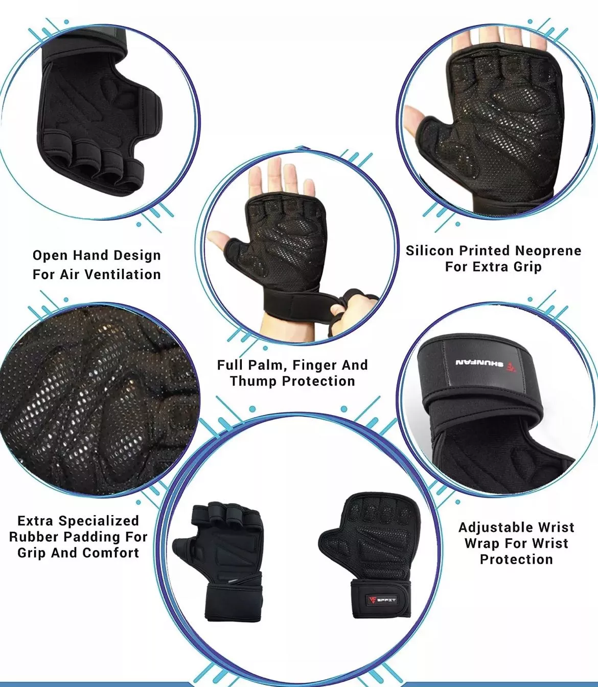 Les gants de musculation sont des accessoires conçus pour protéger les mains lors d’exercices de musculation. Ils sont généralement fabriqués à partir de matériaux résistants tels que le cuir ou le néoprène, et sont équipés de rembourrages pour protéger les paumes et les doigts.