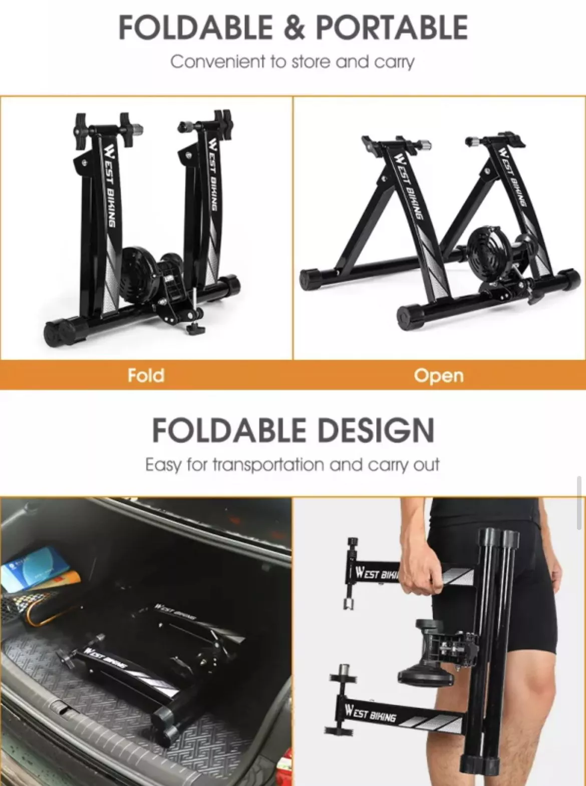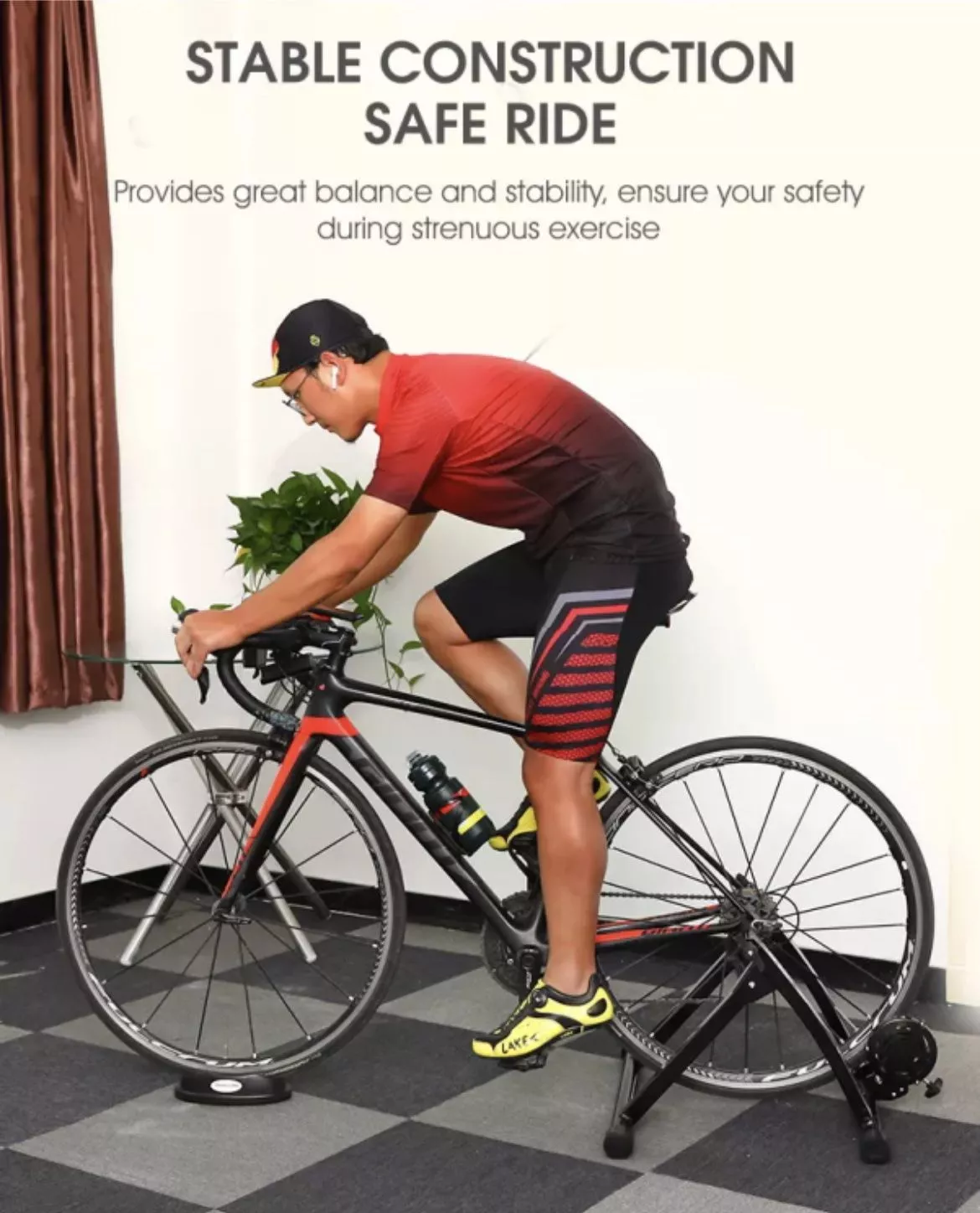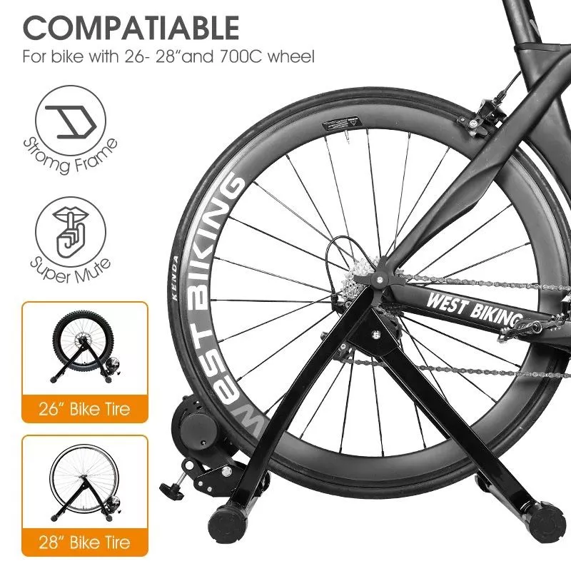 Convient aux roues de tailles différentes de 26 « ~ 28 » et 700C ; Avec bloc de roue avant et attache rapide et outil Rouleau de roue magnétique à réduction de bruit maximale, conçu avec un ventilateur de dissipation thermique Facile à assembler sans outils supplémentaires, tous inclus dans l’emballage La plate-forme de conduite peut être pliée et rangée, ce qui économise de l’espace et est pratique à déplacer Matériau en acier, stable et sûr, forte capacité portante, conduite plus stable