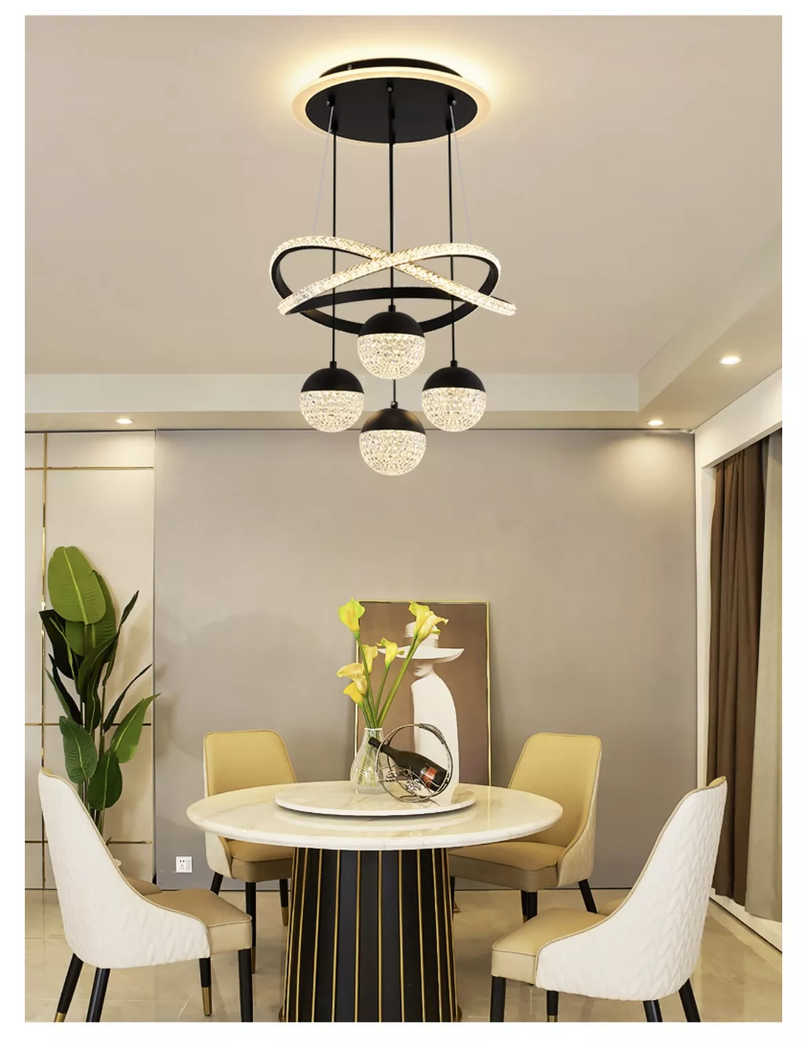 - Pour être le point focal de votre chambre : plein de gouttelettes en cristal transparent suspendues et de gouttes d’eau créent un spectacle