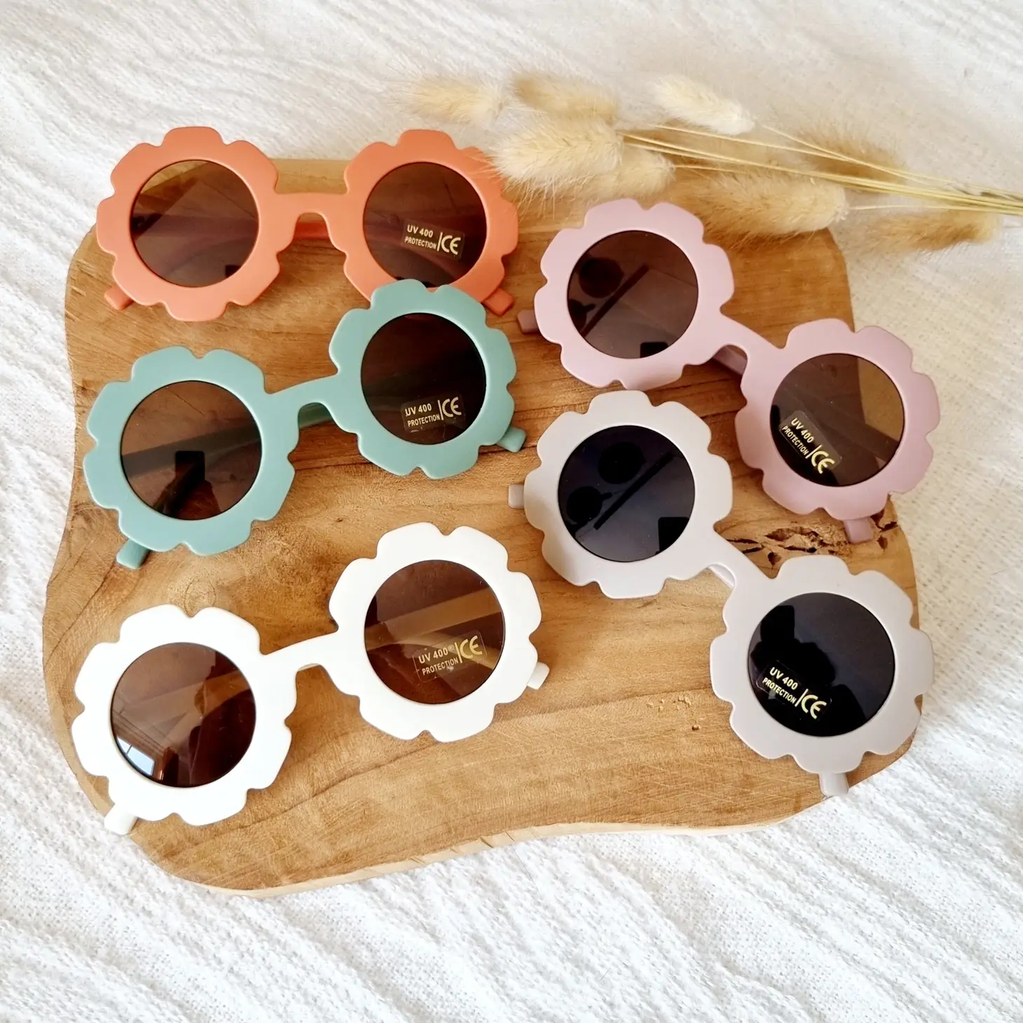 | Lunettes de soleil | Fleur blanche, Fleur mauve, fleur taupe, Fleur terra-cotta, fleur verte, Orange |