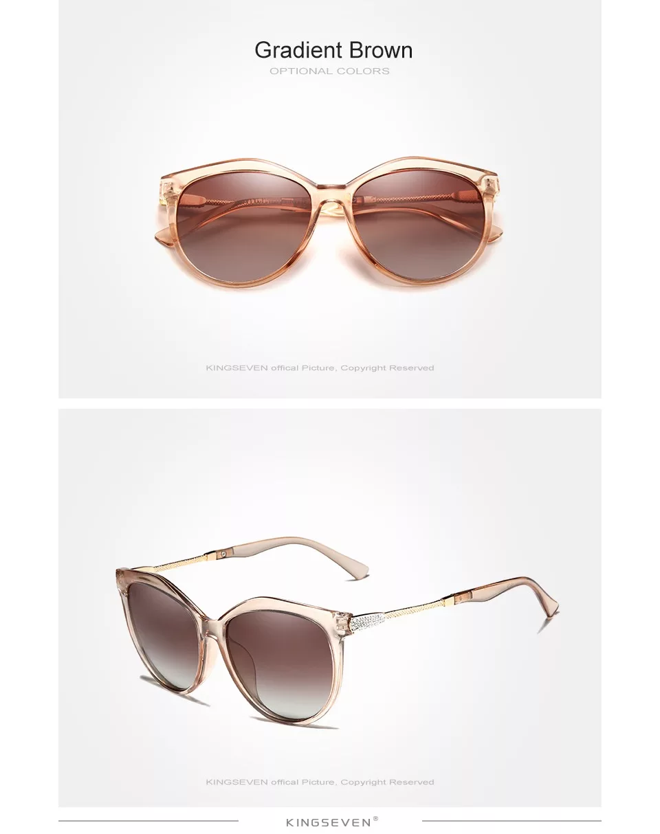 KINGSEVEN Lunettes de Soleil Cat Eye Polarisées pour Femmes Elégant et léger Son design modernise un classique minimaliste. Les montures sont de haute qualité, résistantes au temps et aux chocs. Les lunettes parfaitement emballées dans une boîte, avec un étui et des autocollants