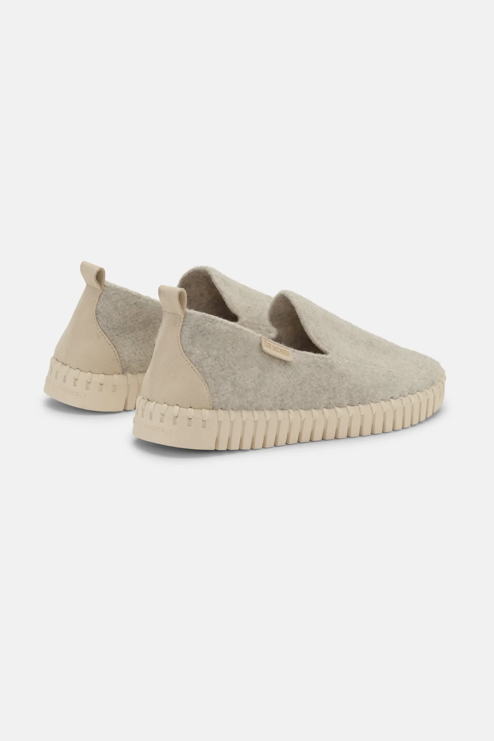 Découvrez nos mocassins Tulip Felt par ILSE JACOBSEN HORNBÆK. Conçus avec soin, ces mocassins associent une tige en feutre à notre emblématique semelle Tulip, confortable et flexible. Composée à 75 % de caoutchouc naturel et à 25 % de caoutchouc recyclé, elle est cousue avec soin avec du fil recyclé assorti, sans colle. Disponibles en quatre coloris distincts, ces mocassins allient confort et style pour sublimer votre quotidien. Entrez dans un univers de sophistication douillette avec ce choix intemporel et raffiné.