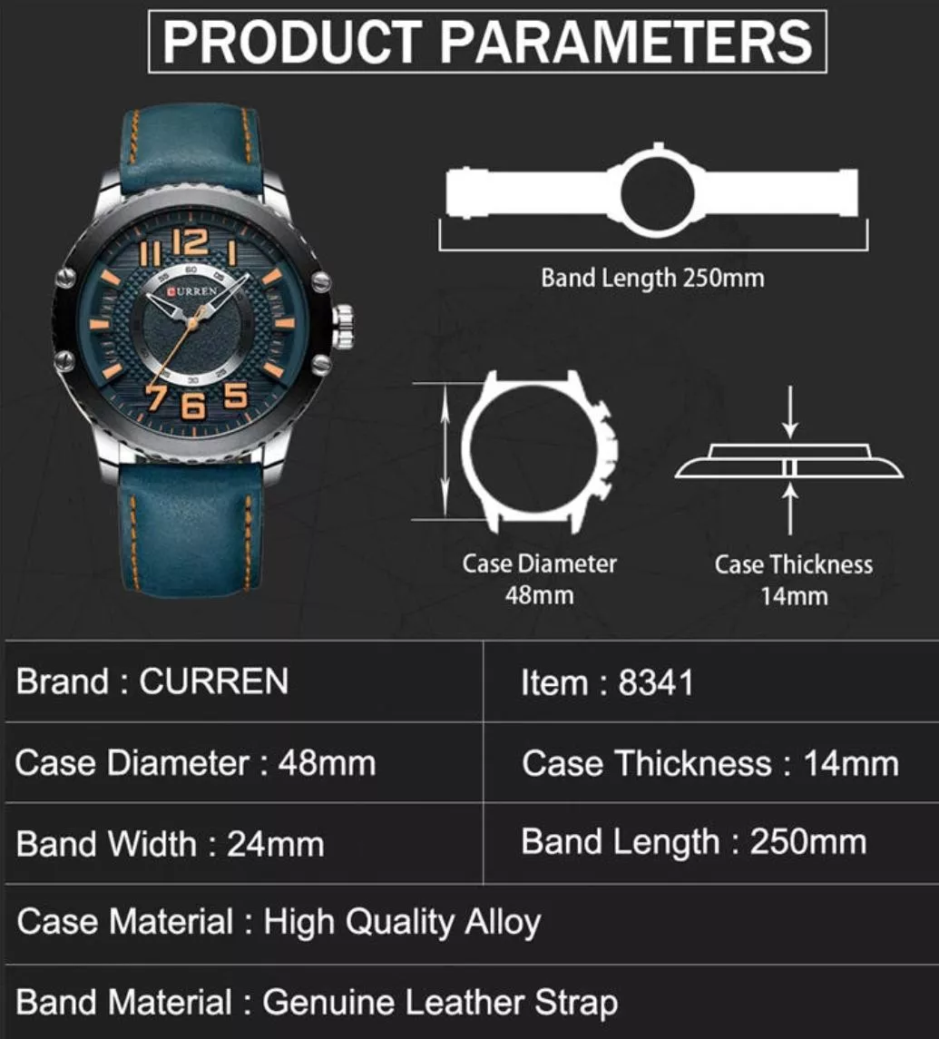 Montre Curren Cuir Noir Produit de qualité