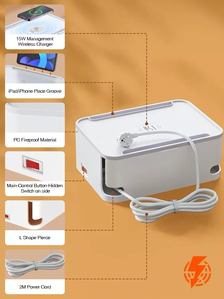 Une cachette parfaite pour les câbles – Avec notre boîte de gestion des câbles, vous pouvez remettre de l’ordre dans votre maison ou votre bureau et cacher le désordre des câbles. Finis les enchevêtrement et trébuchement !