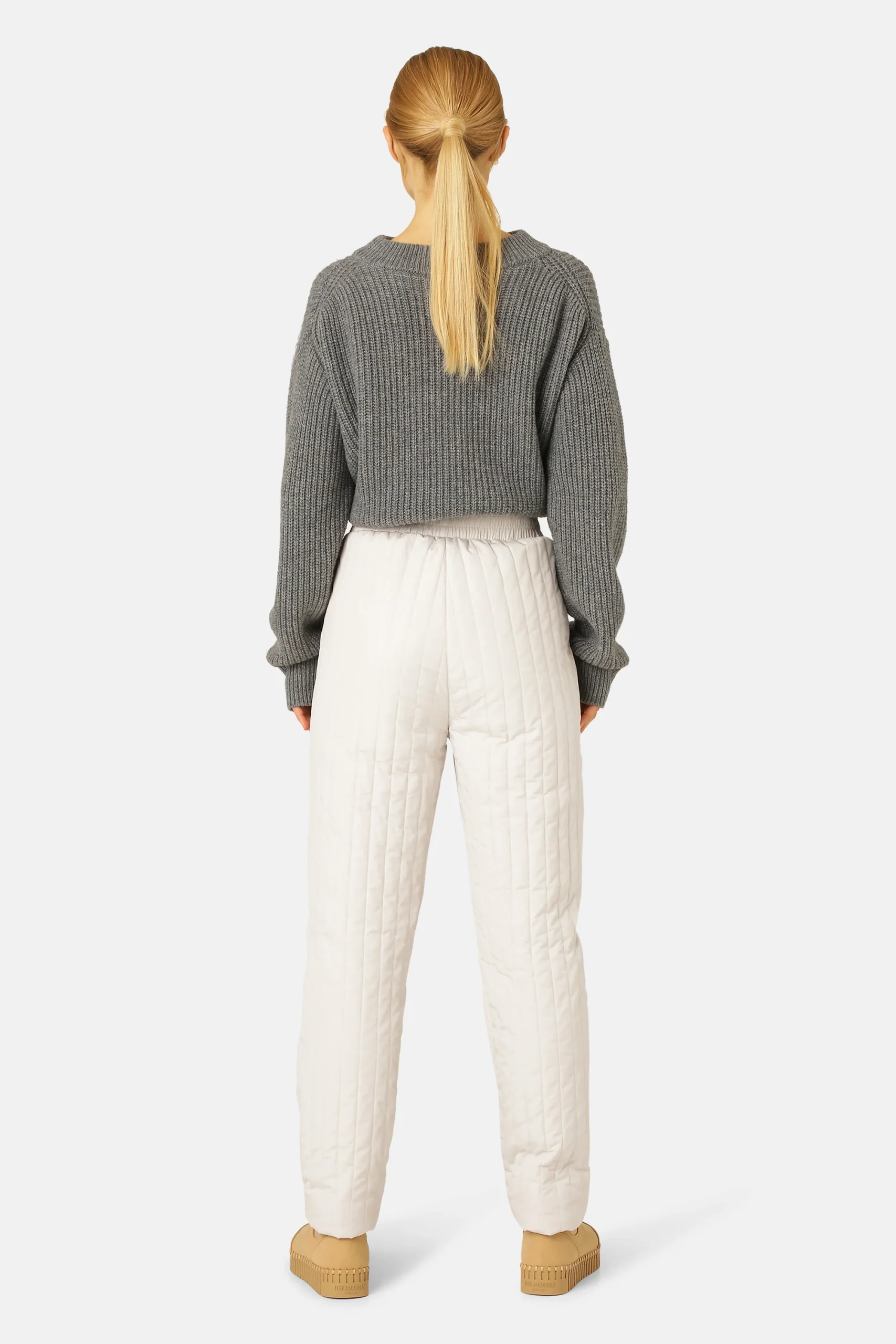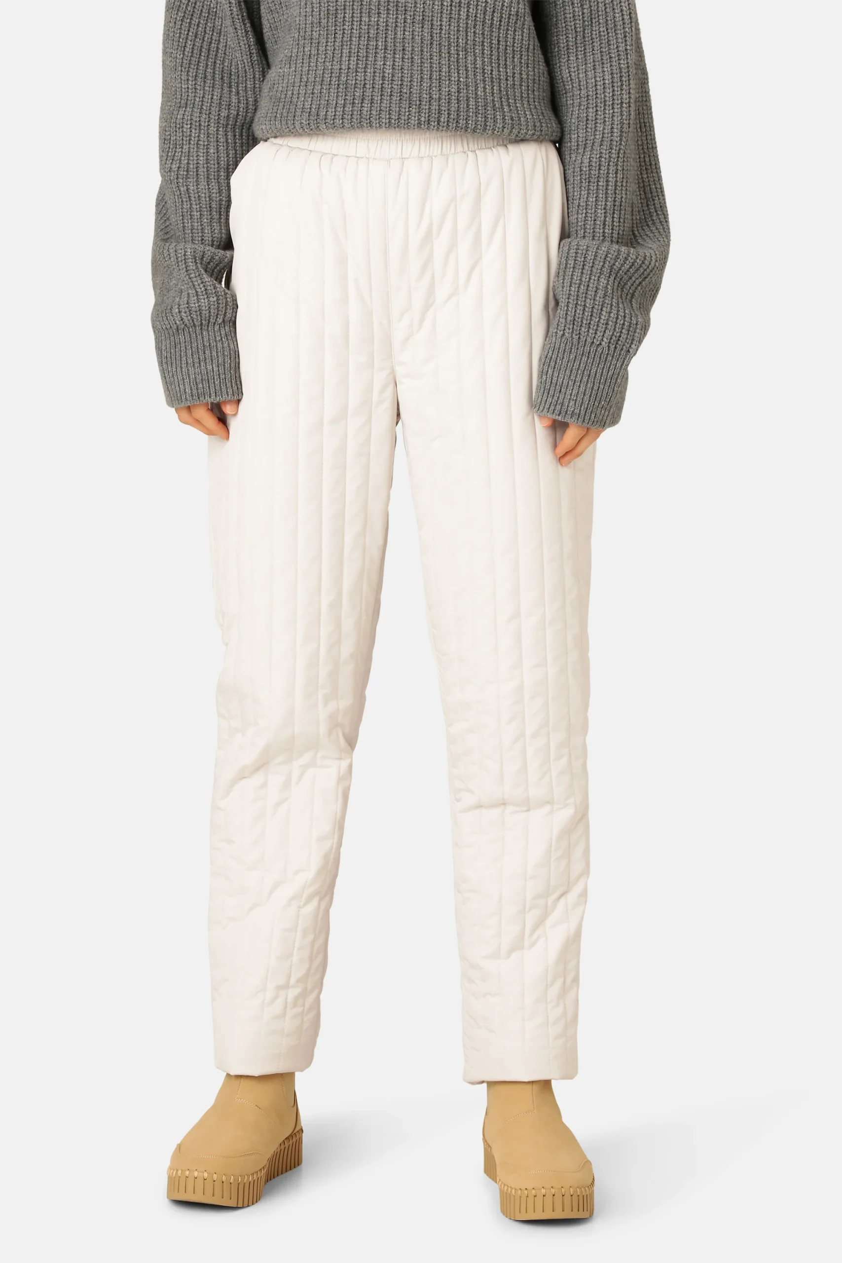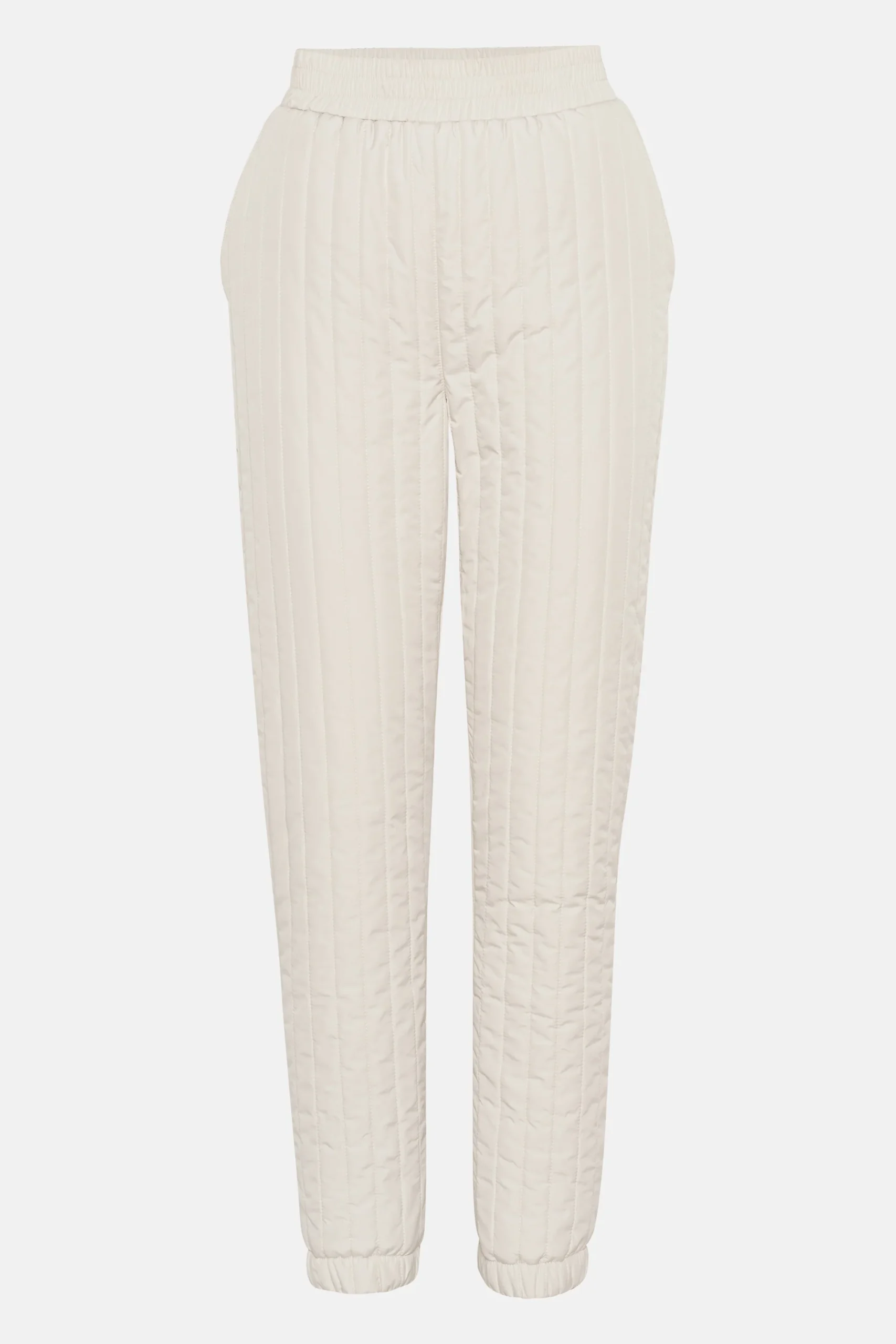 Pantalon matelassé avec poignets et taille élastiqués. Ce pantalon présente des poches italiennes et des rayures verticales matelassées. Idéal pour les froides journées d’hiver. Composition : extérieur 100 % polyester recyclé, doublure 100 % polyester recyclé. Rembourrage : 100 % polyester.