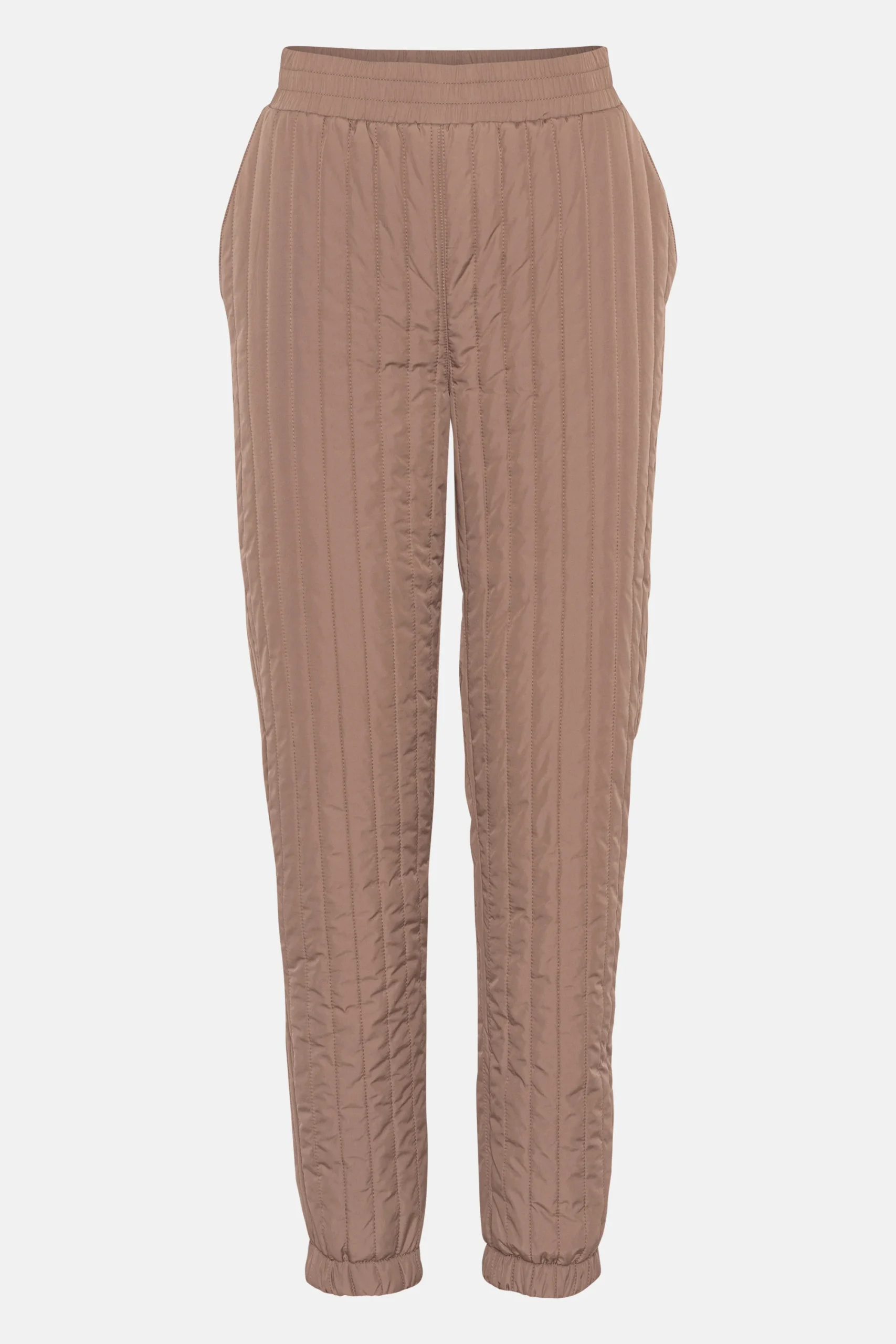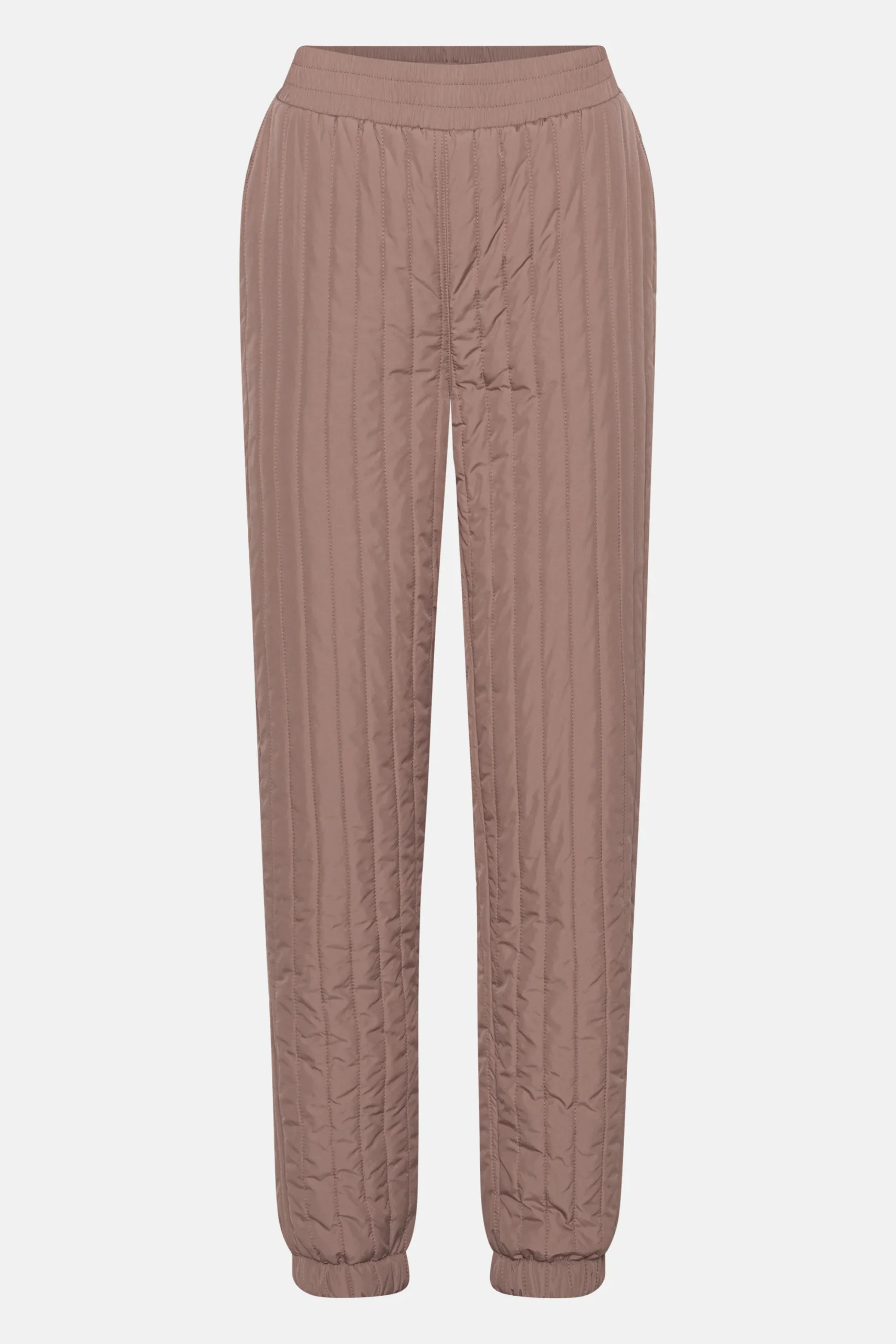 Pantalon matelassé avec poignets et taille élastiqués. Ce pantalon présente des poches italiennes et des rayures verticales matelassées. Idéal pour les froides journées d’hiver. Composition : extérieur 100 % polyester recyclé, doublure 100 % polyester recyclé. Rembourrage : 100 % polyester.