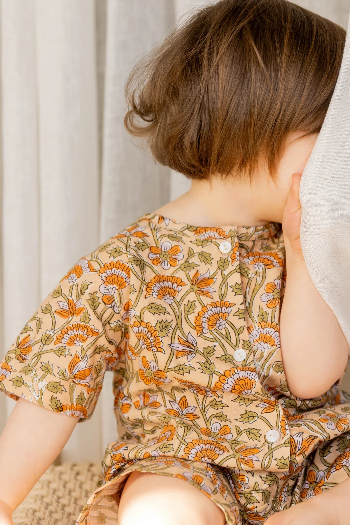 Un vent d’été souffle sur le vestiaire des tout-petits avec le pyjama Nuny en coton tout doux. On adore son imprimé floral aux teintes orangées et sa coupe confortable à manches et jambes courtes. Pratique au quotidien, il s’ouvre par boutons sur le devant et pressions à l’entrejambe. Le détail froncé au dos apporte une touche de volume pour plus d’aisance.