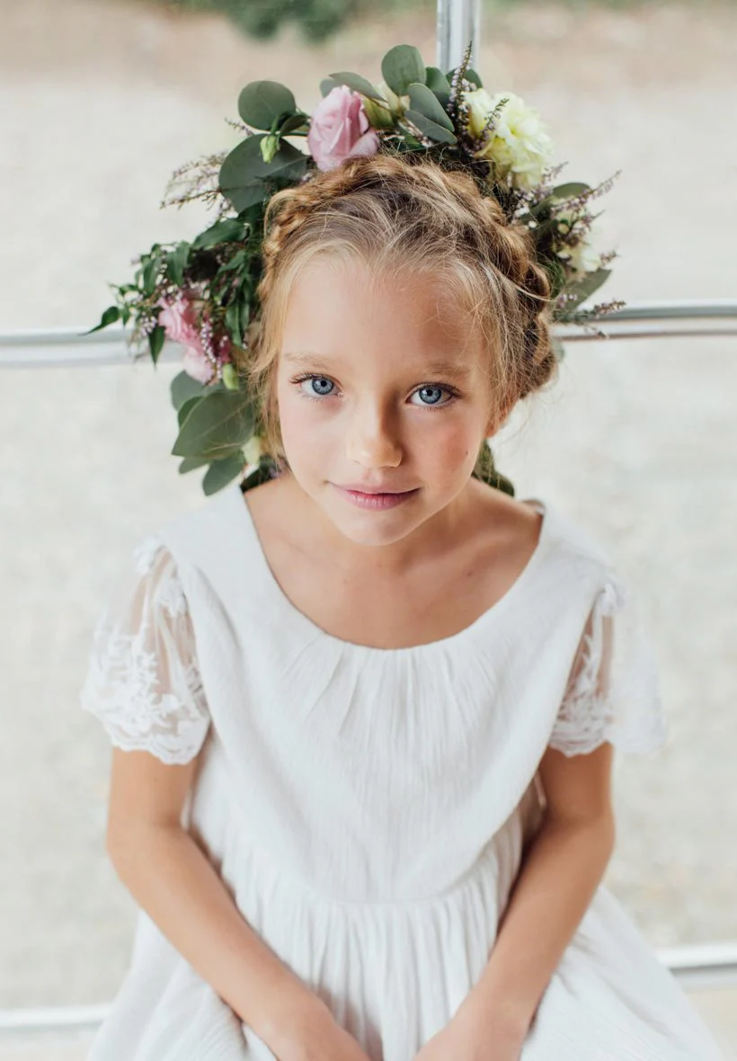 Nos suggestions : Le style bohème s’entoure de fleurs, avec la couronne Jade et ses délicates fleurs de cerisier ou la couronne Juliette à double rangs de fleurs ivoires. La robe Manon trouve chaussure à son pied avec des ballerines.