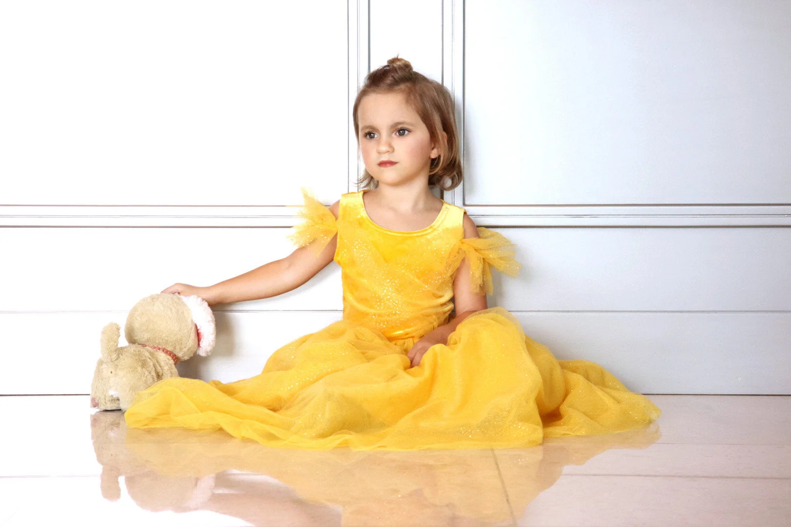 Transformez votre enfant en une belle étoile baignée de soleil avec notre version de rêve de la robe de bal de Belle jaune emblématique.