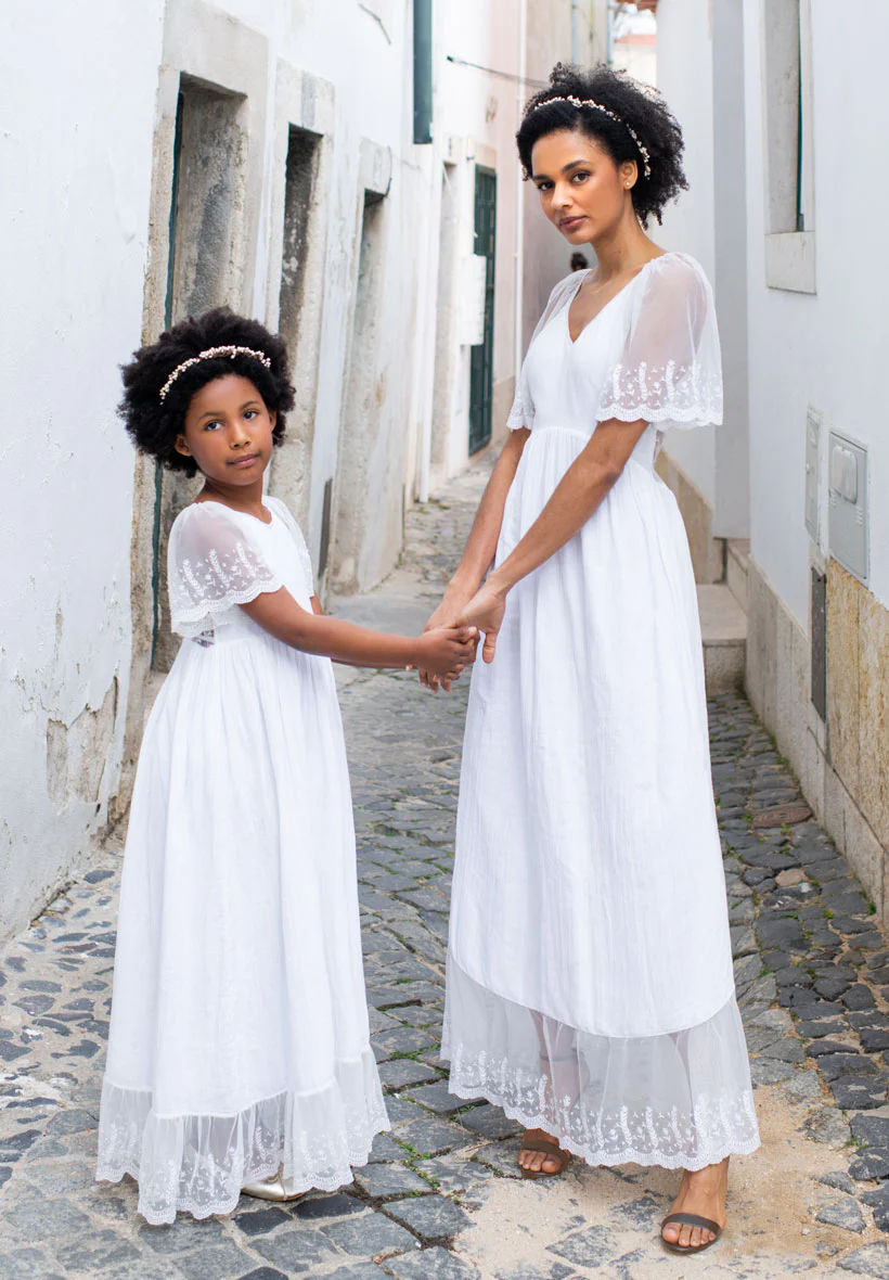 Débordante d’élégance, originale à souhait avec son dos qui joue la transparence avec ses belles dentelles tout en restant adaptée aux enfants, mais également très confortable à porter, la robe de cérémonie pour filles et adolescentes Salomé blanc est LA tenue parfaite pour une communion ou un mariage champêtre. Attention, petite nuance pour les bébés dont le dos est un peu plus couvrant, pour davantage de confort avec sa doublure en coton !