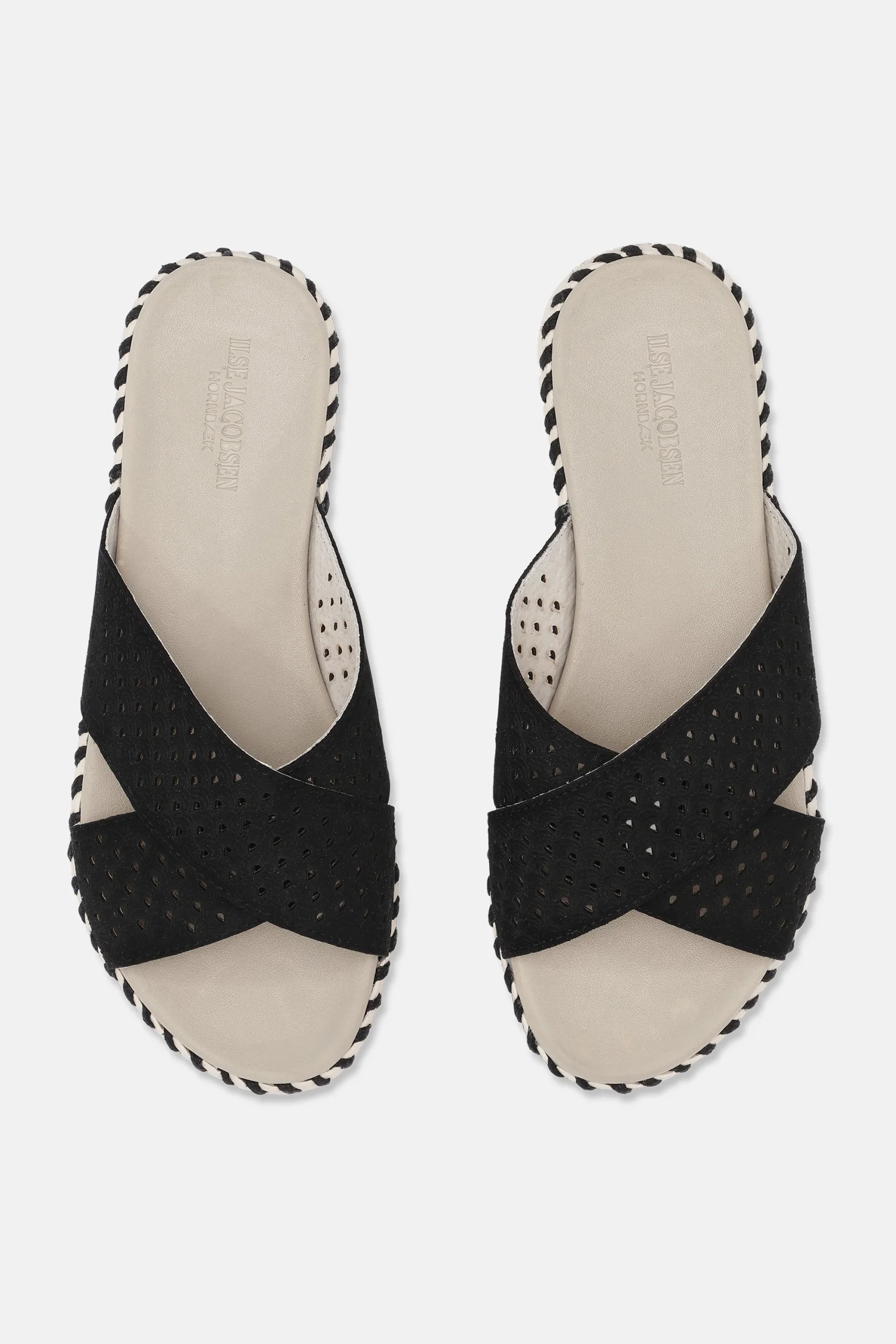 Sandale Tulip à enfiler par Ilse Jacobsen. La tige est en microfibre recyclée avec un motif décoratif découpé au laser. Disponible en plusieurs coloris, avec des coutures recyclées assorties. Sa semelle confortable et flexible est composée à 75 % de caoutchouc naturel et à 25 % de caoutchouc recyclé. Tige : microfibre recyclée – 60 % nylon, 40 % PU.