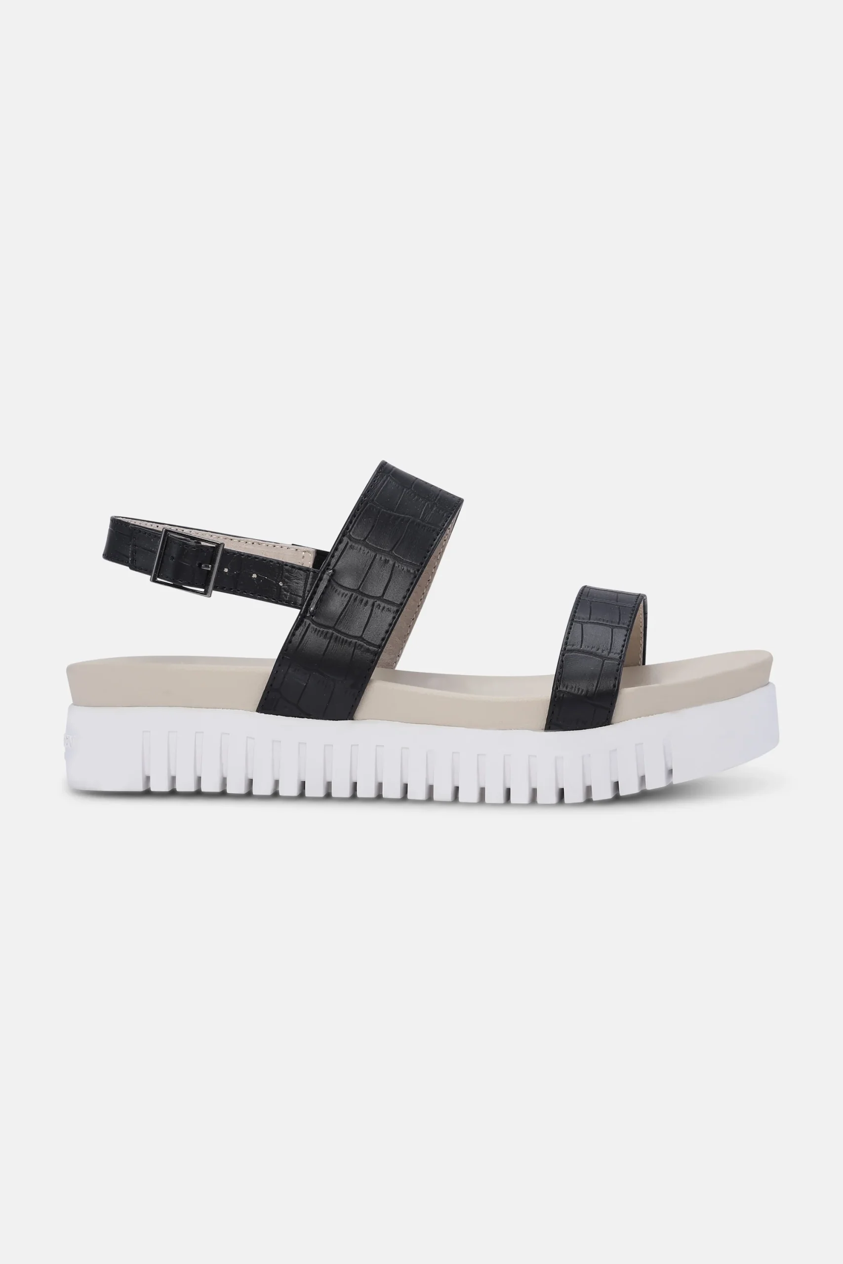 Cette sandale tulipe signée Ilse Jacobsen est parfaite en toute occasion. Pratique, élégante et très confortable, elle est dotée d’une semelle extérieure souple en caoutchouc naturel et d’une semelle intérieure en mousse souple. La tige est en PU avec une structure croco.