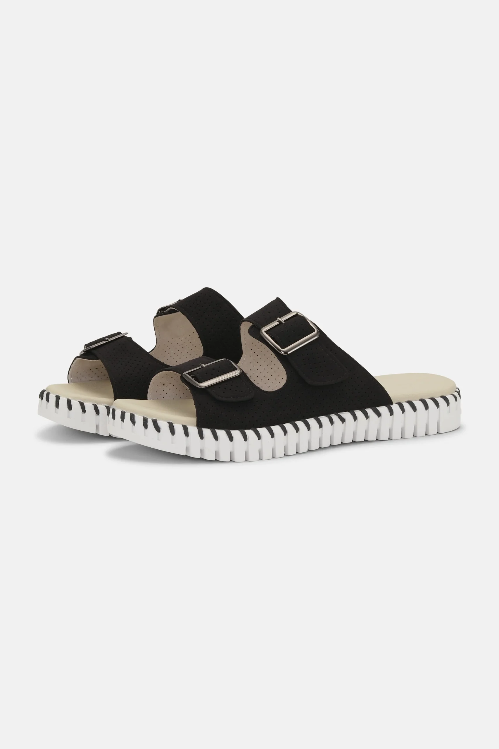 Sandale légère par Ilse Jacobsen. La tige est en microfibre décorée d’un motif découpé au laser. La semelle extérieure est composée à 75 % de caoutchouc naturel et à 25 % de caoutchouc recyclé.
