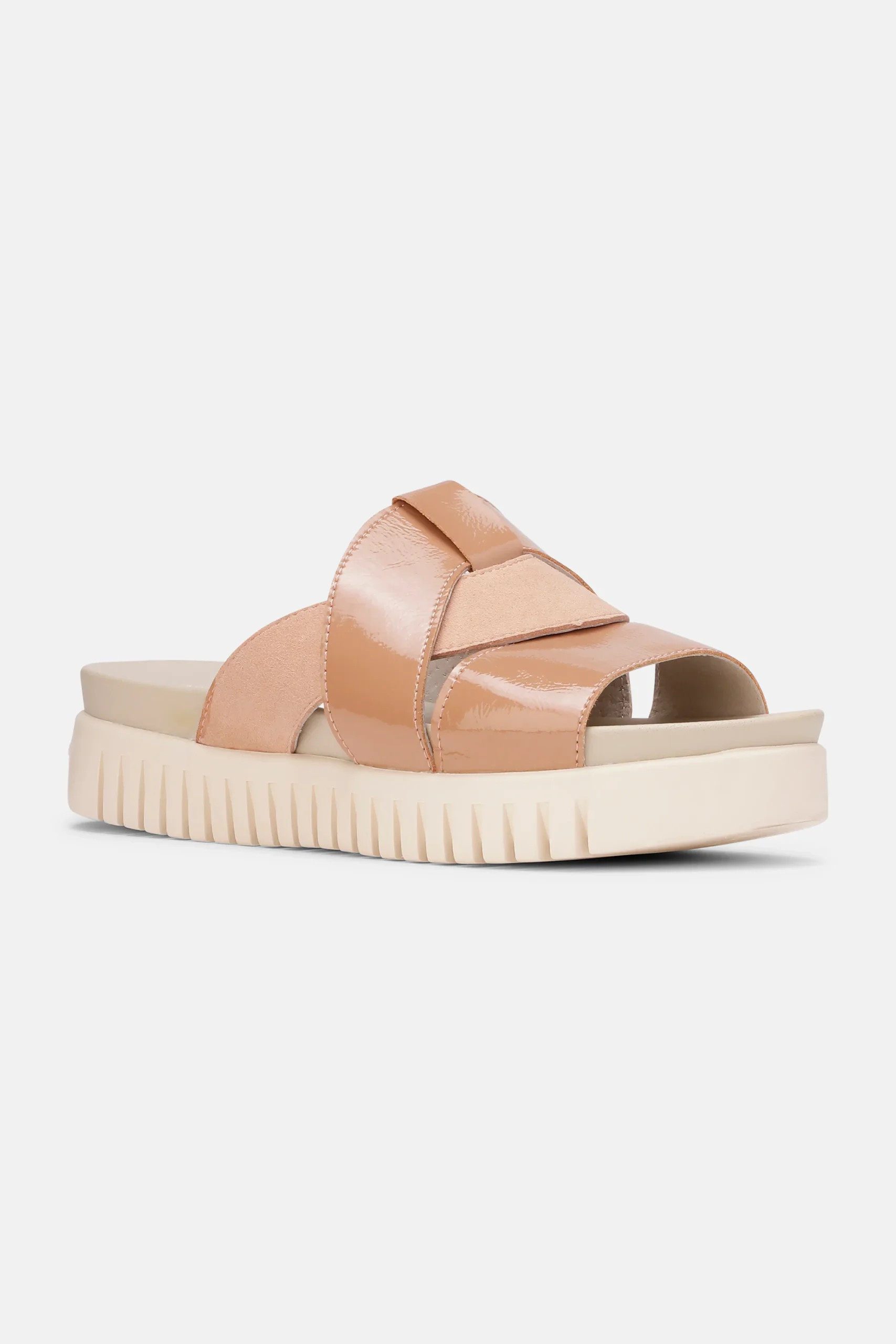 Sandale à enfiler tulipe par Ilse Jacobsen. La tige est composée de lanières en PU brillant et en microfibre douce. La chaussure est doublée de peau de porc pour plus de confort. La semelle extérieure est composée à 75 % de caoutchouc naturel et à 25 % de caoutchouc recyclé.