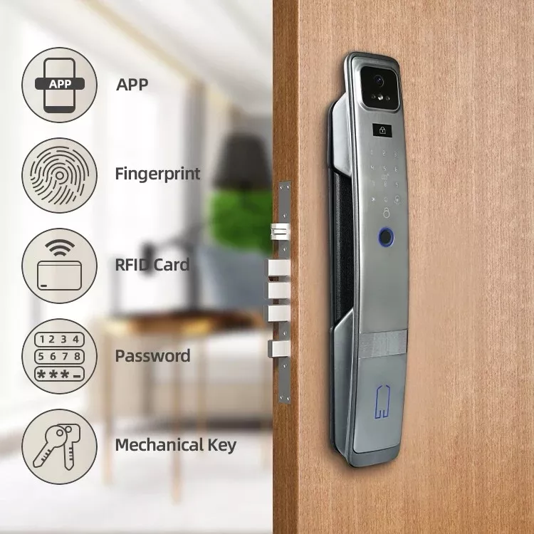5 façons de déverrouiller la flexibilité : Smart Door Lock prend en charge les empreintes digitales, la carte IC, le mot de passe, la clé mécanique et l’application mobile pour ouvrir la porte, et vous pouvez également afficher l’historique de déverrouillage via l’application.