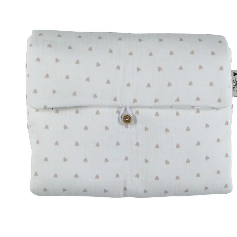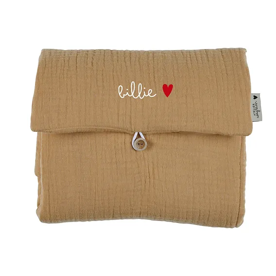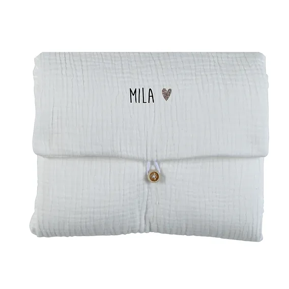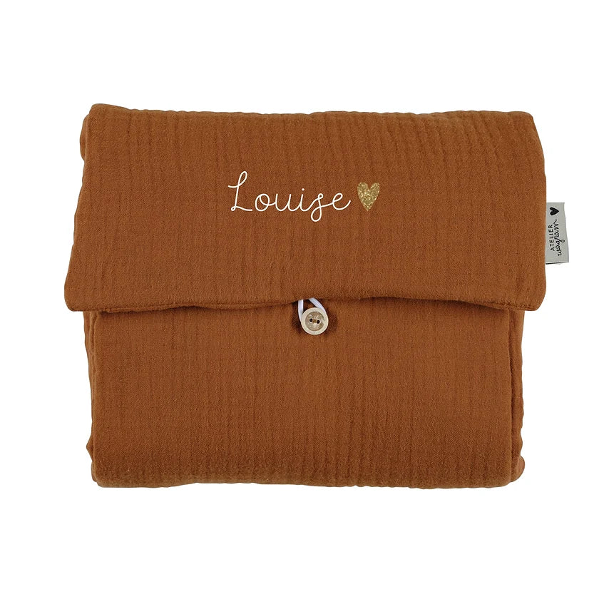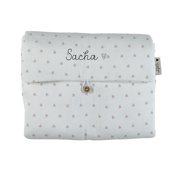 Nouveau modèle de tapis à langer ! Caractéristiques • Extérieur et intérieur en triple gaze de coton • Garnissage 100% polyester • Bouton pour le maintenir fermé une fois plié • format 50 x 70 cm Tapis à langer La personnalisation est présente sur le rabat à l’extérieur et à l’intérieur du produit. Fabrication au […]