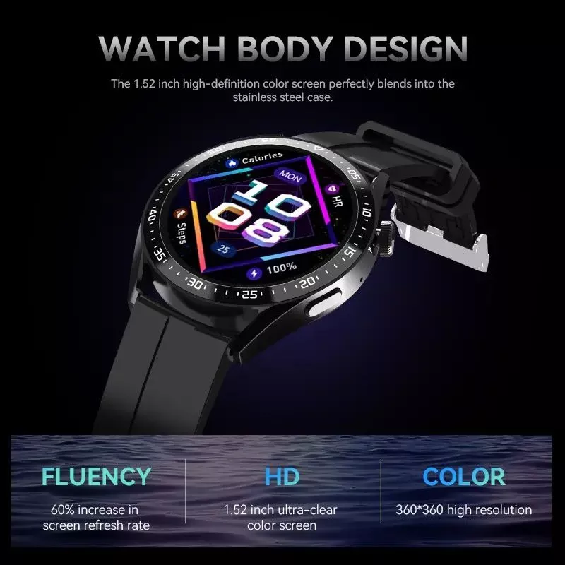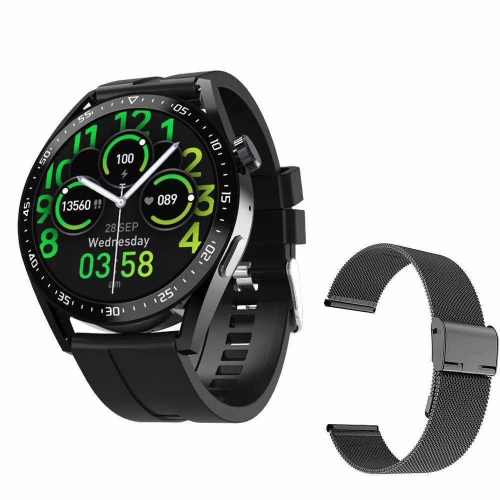 2 bracelets supplémentaires offerts Compatible iOS et Android Taille écran: 1,4 pouces Résolution: 240 * 240 Bluetooth : 4.0 Blueetooth Call : décrocher ou initier appel depuis la montre Batterie: 290 mAh Fonctions : appels, SMS, Facebook, notifications Twitter, etc. ; moniteur de fréquence cardiaque, podomètre, Sport, Calories, distances, réveil, calendrier, chronomètre, calculatrice
