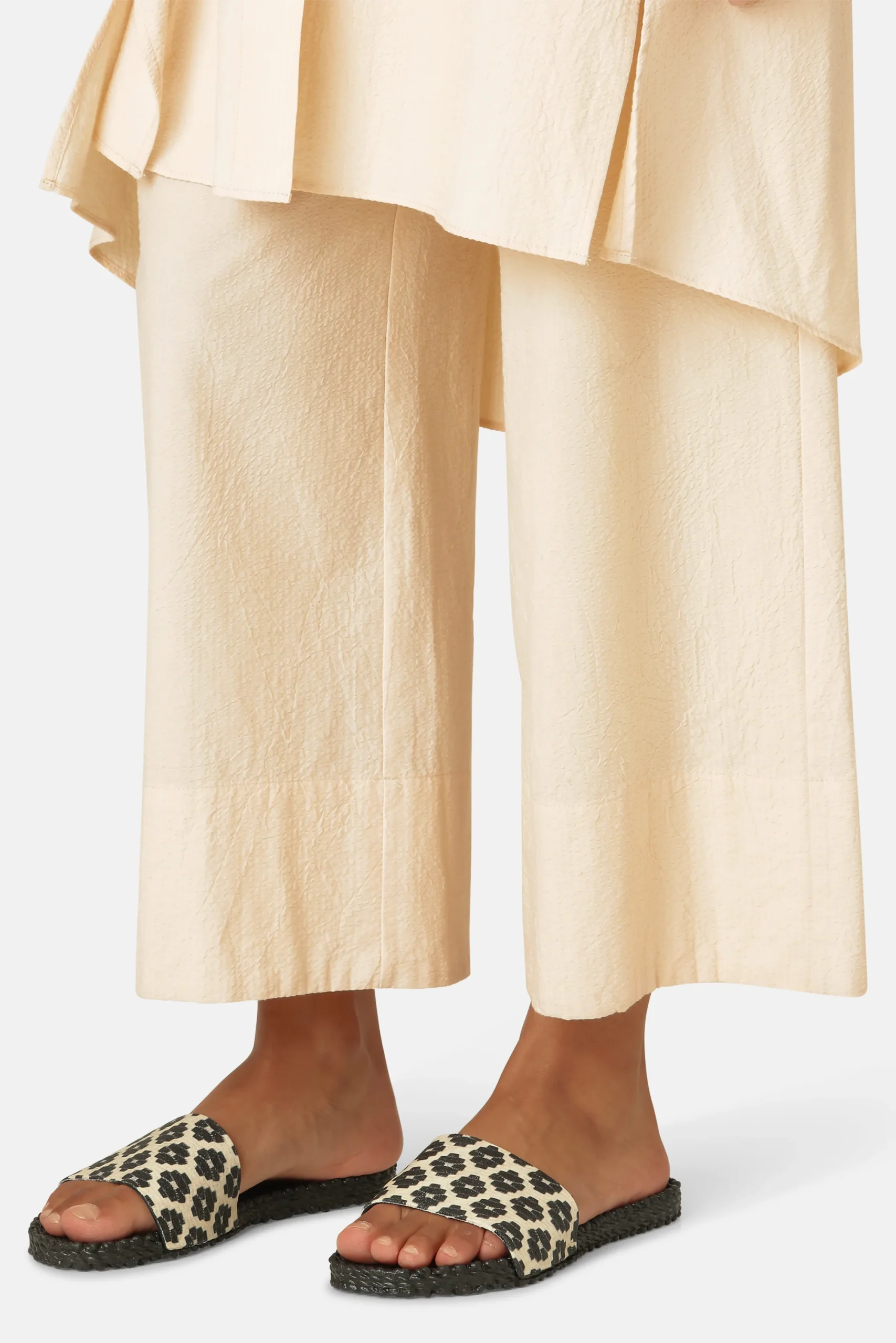 Tongs à enfiler en caoutchouc aéré. L’air est injecté dans la semelle pour une chaussure légère et flexible. Ces tongs Cheri sont extrêmement confortables grâce à leur semelle intérieure à motifs, créant un léger effet massant. Ce modèle est doté d’une bride supérieure sur l’empeigne, en tissu tissé, décorée de fleurs pailletées.
