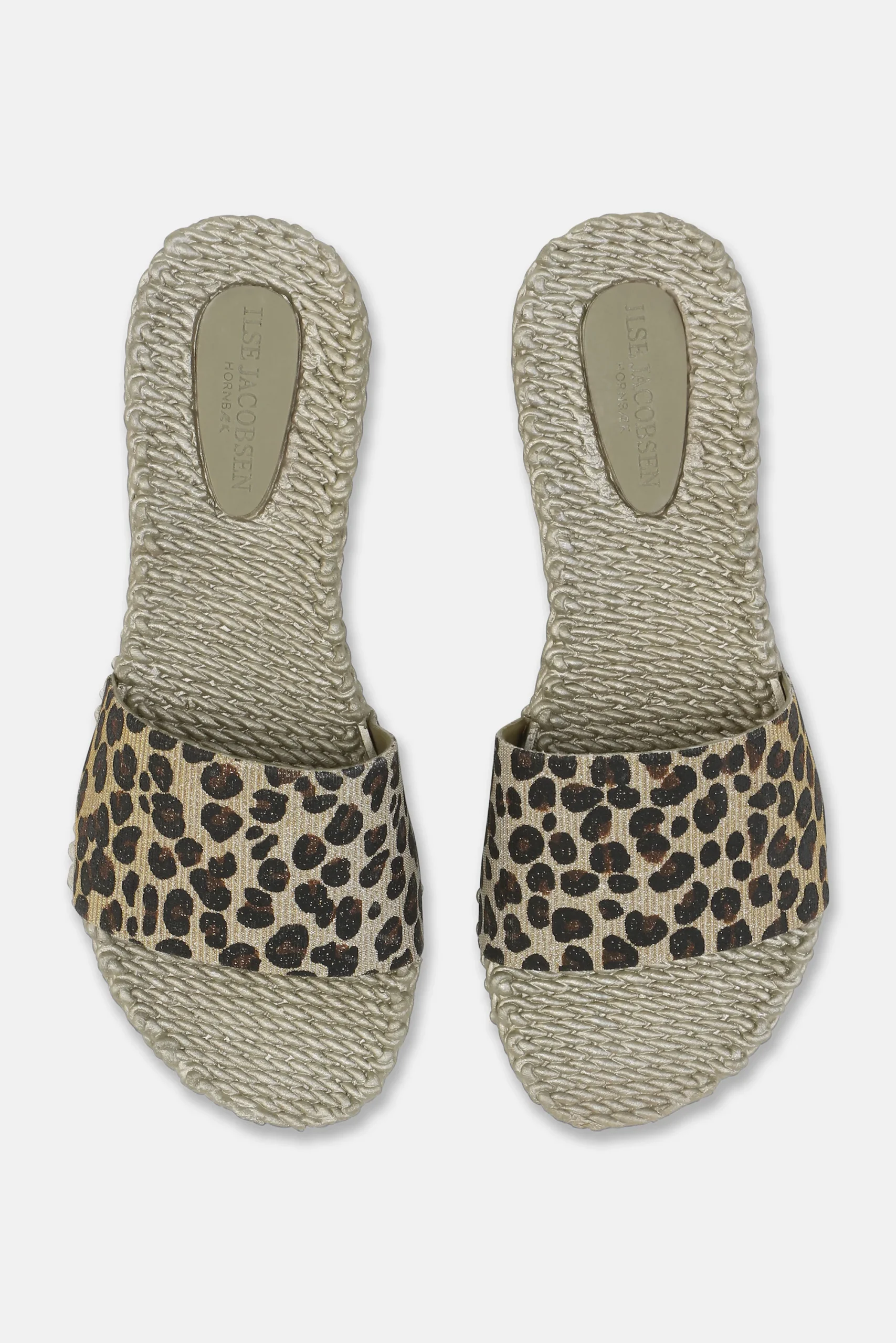 Tongs à enfiler en caoutchouc aéré. L’air est injecté dans la semelle pour une chaussure légère et flexible. Ces tongs CHERI sont extrêmement confortables grâce à leur semelle intérieure à motifs, créant un léger effet massant. Ce modèle est doté d’une bride supérieure sur l’empeigne, décorée d’un tissu léopard à rayures pailletées.