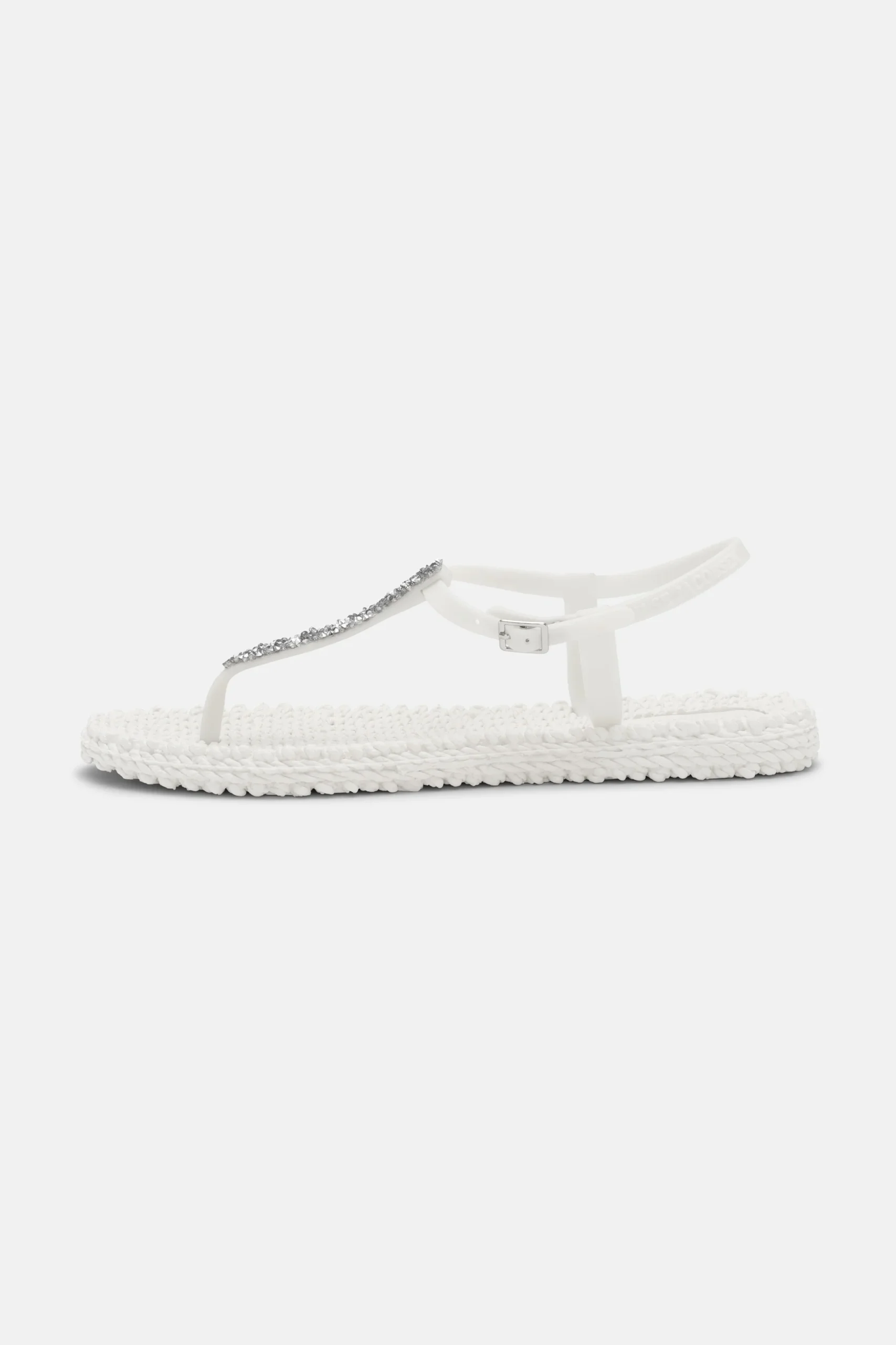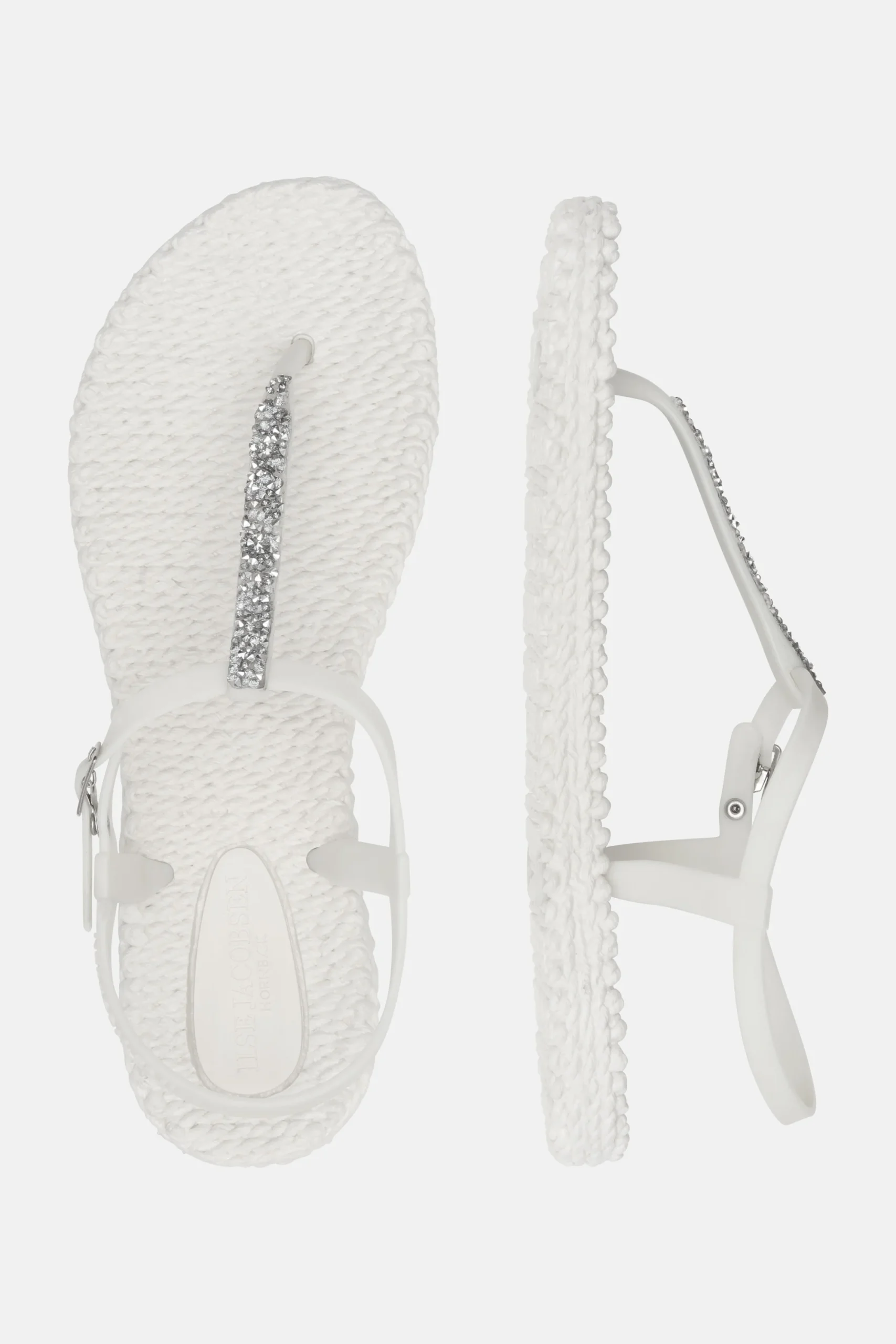 Nos tongs Cheerful sont fabriquées avec du caoutchouc pneumatique et de l’air induit pour les rendre légères et flexibles. Cette tong est extrêmement confortable avec sa semelle intérieure à motifs, créant un doux effet de massage. Ce style a un look luxueux avec une bride tong ornée de belles pierres scintillantes, ce qui en fait la tong parfaite pour les fêtes. Bride de cheville réglable avec fermeture à boucle.