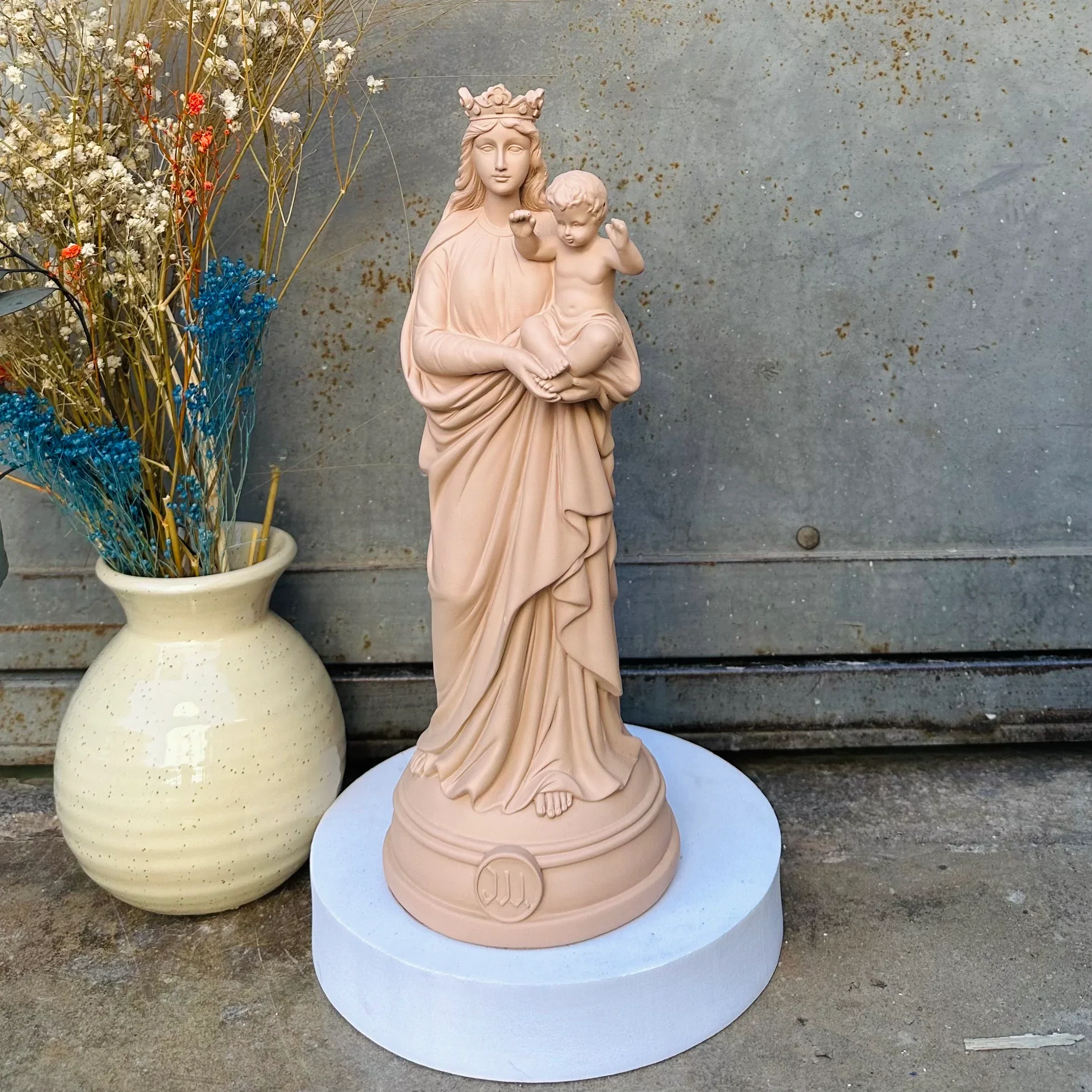 Voici la statuette de la Vierge à l’Enfant, celle qui surplombe la basilique Notre-Dame de la Garde. La Bonne Mère, comme l’appellent affectueusement les Marseillais est ici une reproduction des plus fidèles, moulée en résine et couverte de couleur. Des couleurs qui évoluent, comme dans la mode, en fonction des saisons et des tendances.