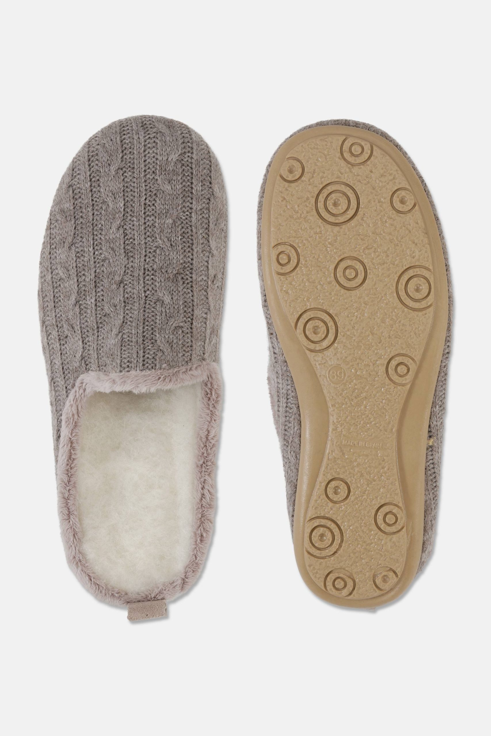 Cosy slider with a knitted upper and 100% wool lining. Soft and cosy for days at home. Outsole in rubber. Made in Europe.