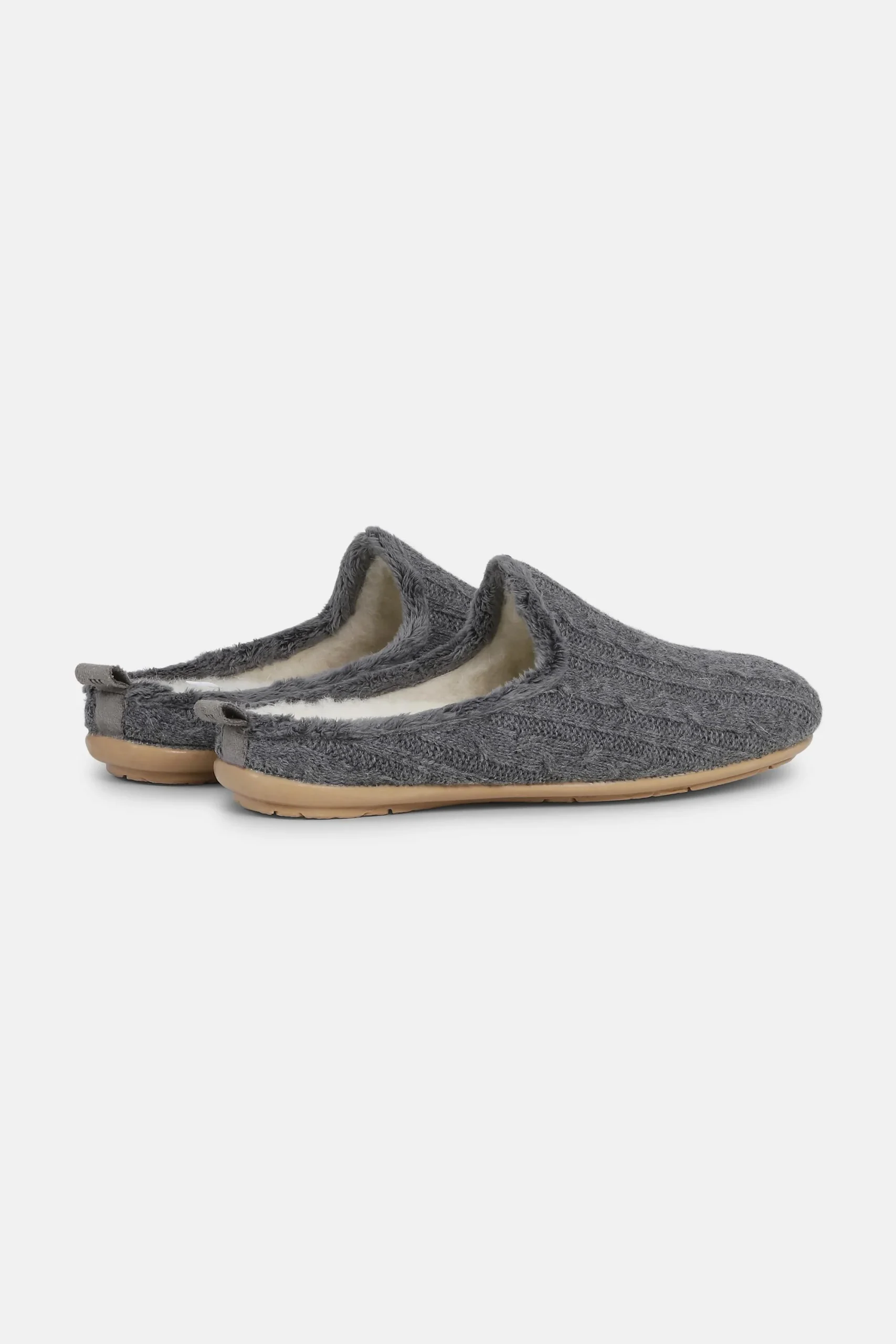 Cosy slider with a knitted upper and 100% wool lining. Soft and cosy for days at home. Outsole in rubber. Made in Europe.