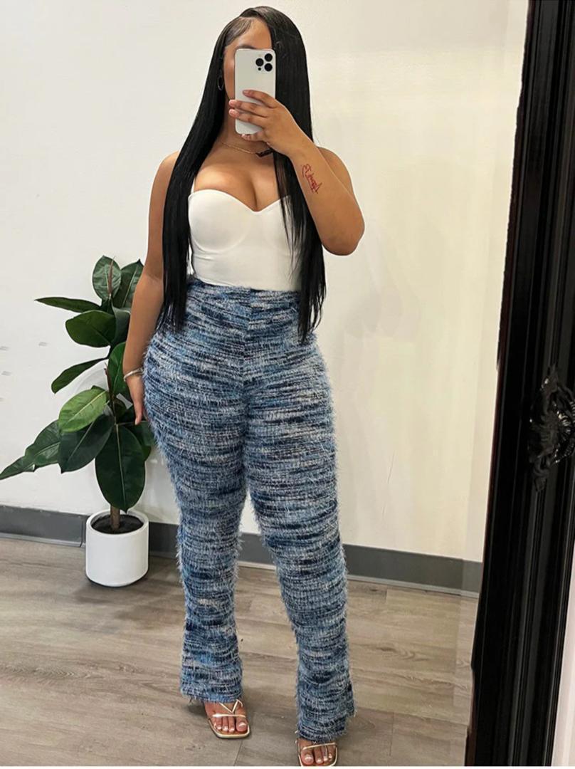 Women’s High-Waisted Fringe Striped Bell Bottom Pants